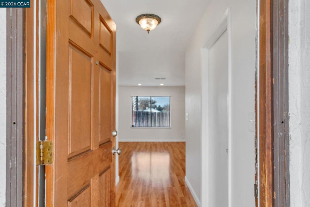 Light-filled single-story home offering 3 bedrooms, 2 bathrooms and 1,162 sq. ft. The welcoming kitchen features white painted cabinetry, abundant counter space, and ample storage, along with a double sink, refrigerator, stove, and microwave. There’s space for a dining table, making it perfect for everyday meals and gatherings. The spacious living room provides a comfortable place to relax, while the nicely sized bedrooms offer flexibility for family, guests, or a home office. Sliding doors from the kitchen open to a deck and generous backyard with plenty of room to play and entertain. A gated side yard is ideal for storing recreational toys, and an older shed provides additional storage. The expanded driveway leads to an attached two-car garage with laundry hookups (gas or electric). Conveniently located near schools, shopping, commuter routes, and nearby trails.