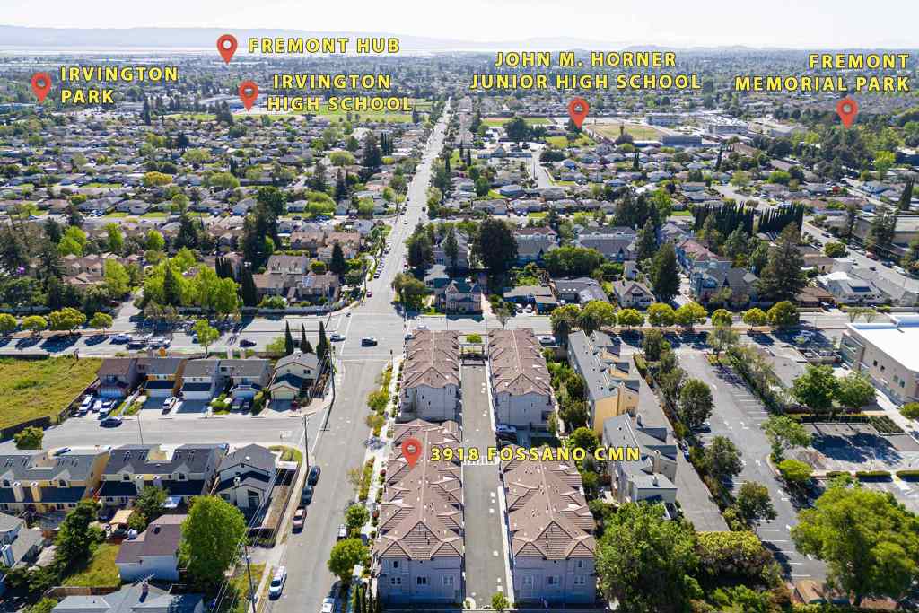 Welcome to this beautifully updated townhome in the highly sought-after Villas at Florio community, located within the top-rated Irvington High School district. Featuring 3 bedrooms, 3.5 bathrooms, and 1,818 sq. ft. of living space, this home offers comfort, style, and functionality for today’s lifestyle. Private In-Law Suite: Convenient 1 bed/1 bath on the ground floor—ideal for guests, extended family, or a home office. Open-Concept Living: Bright second floor with a spacious living room, cozy gas fireplace, and seamless flow into the dining area and kitchen. Chef’s Kitchen: Hardwood cabinetry, quartz countertops, stainless steel appliances, freestanding gas cooktop & powerful hood—perfect for cooking and entertaining. Dual Master Suites: Two generous suites on the third floor, each with walk-in closets, double windows, and elegant tile finishes. Modern Comforts: Central heating & cooling, double-pane windows, tankless water heater, newly refreshed hardwood flooring, and low HOA dues. Walk to Irvington schools, parks, shopping, library, community center, supermarkets & restaurants. Easy access to I-680, I-880, Dumbarton Bridge & BART. This home combines contemporary design, modern upgrades, and an unbeatable location—a true gem in one of Fremont’s most desirable neighborhood.