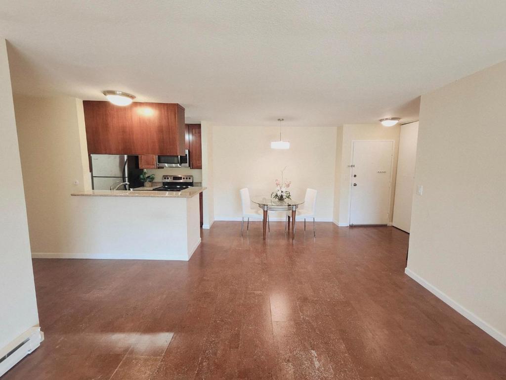 Open House on Sunday, March 15th from 1:00-3:00PM. Beautiful top floor, corner end unit, one of our most popular floor plans in the complex…The Argyll Plan. A spacious 2 bedroom, 2 bath condo with 2 primary suites separated by a spacious living/dining room combination. New wood floors being installed, double pane windows and patio door grace this unit as well as a large private deck with views of majestic trees. Enjoy prepping meals in a nicely remodeled kitchen with granite counters and all stainless steel appliances including a built-in microwave. Both bathroom have also been renovated with quartz shower walls. An in-unit washer & dryer combo makes laundry a breeze. Residents can take advantage of a variety of community amenities, including a heated in-ground pool, spa, steam room, and sauna, perfect for relaxation and recreation. The community facility also includes laundry services for added convenience. Additional highlights include one garage space and an additional community facility for laundry, ensuring practicality and ease of living.