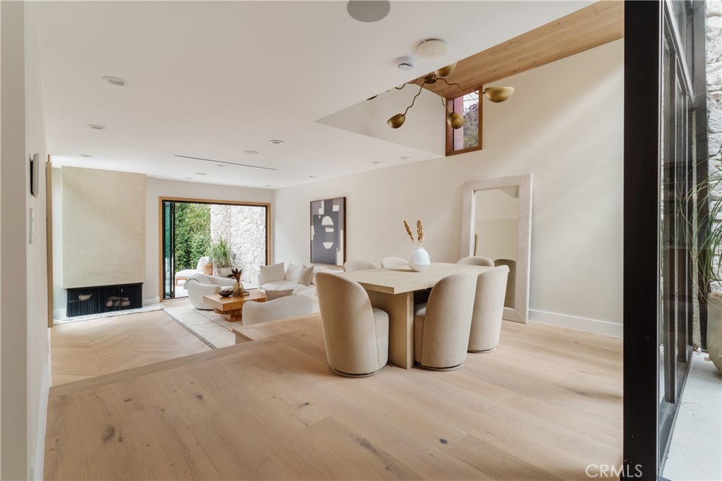 This strikingly reimagined mid-century residence, privately set south of the Boulevard in coveted Studio City. Every inch of this 3-bedroom, 2.5-bath home with an additional office reflects refined craftsmanship, natural warmth, and modern design. The exterior immediately captivates with rich cedar cladding and hand-laid stonework, setting the tone for the sophisticated interiors within. Inside, airy open spaces unfold across herringbone-patterned wood floors, framed by custom millwork and natural textures that evoke a sense of calm and connection. The heart of the home is the seamless living, dining, and kitchen area — bright, inviting, and designed for effortless entertaining. Floor-to-ceiling glass doors extend the space outward to a private patio with a built-in grill, perfect for gathering or relaxing under the California sun. The chef’s kitchen impresses with white oak cabinetry, Viola Monet Calacatta marble, paneled appliances, and sleek fixtures — blending organic materials with contemporary elegance. A powder room, laundry area, and attached two-car garage with EV charger complete the main level. Upstairs, the tranquil primary suite is a modern sanctuary with expansive windows, custom closets, and a spa-inspired bath featuring a soaking tub, walk-in shower, and dual vanities. Two additional bedrooms, a full bath, and a flexible den or office provide comfort and versatility for family or guests. Tucked in one of Studio City’s most desirable pockets, this home offers easy access to hiking trails, Mulholland Drive, Beverly Hills, and The Shops at Sportsmen’s Lodge — with Erewhon, Equinox, and top dining just minutes away. A private, polished retreat that embodies elevated California living.