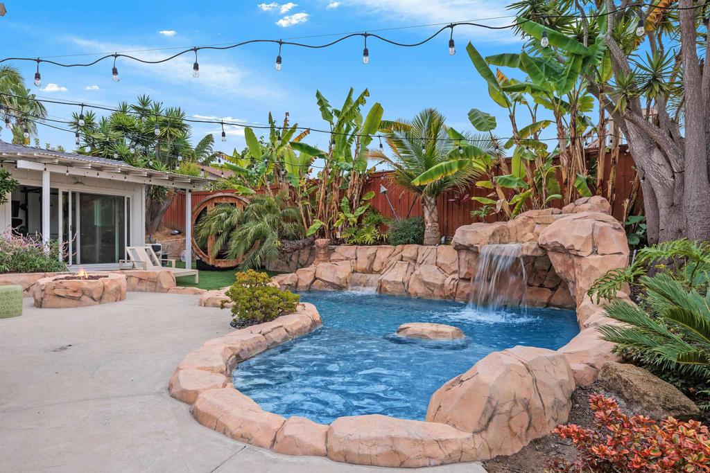 Huge Price Reduction!! Beautifully Appointed, Single Story Tropical Dream Home in Olde Carlsbad with Detached Casita!!! Located on one of the Best streets in Carlsbad, Quality is reimagined in this showcase stunner. Fully upgraded throughout, This magnificent home has undergone a thorough transformation with over 250k in renovations within the last 18 months! As you approach the front of the home you will notice an element of Sophistication and Quality; from the breathtaking landscape design, flowing palm trees, and relentless attention to detail, this is Your Dream Home!. Upon entering, the seamless open concept floorplan draws you in to the reimagined and redesigned space. Newer Medieval-Style front door, newer wood engineered flooring, newer fireplace hearth, plantation shutters, King Crown Moulding, and Starlight Chandelier compliment the spacious great room. The Highly upgraded kitchen features a Viking Range Oven, granite countertops, custom cabinetry, and stainless steel dishwasher. All 3 bathrooms have been completely redone with Toto Washlet toilet systems, custom tile showers, and in the primary retreat bathroom- A jetted bathtub. This Amazing property has been completely replumbed while the home’s electrical system, including switches and wiring, have been upgraded to the highest standards. The Home also Boasts a fully owned Solar System, Water Filtration System, Newer AC Unit, Vivint Security cameras, and Built-In SONO sound system, both inside and outside the home! Step through the newly redesigned 4-Panel roll away back door while your eyes lock upon the stunning tropical backyard images that unfold. A tropical beach paradise awaits as you fall under the spell of the cascading waterfall into the splash pool/heated spa combo complete with swim-up bar. The backyard oasis is complimented with a Detached Casita perfect for a home office, yoga studio, or private gym. A Full Barrel Sauna and Outdoor Shower beckons as your private sanctuary spa day is completely imagined. Relax by the lava rock gas fire pit while listening to the soothing gentle waterfall cascading off the custom-built rock structure. A Tropical Garden Lovers Delight, the Backyard offers a stunning array of palms, cordyline, hibiscus, banana and orange trees, sage, Kangaroo Paw, and various succulent plants. Within 2 miles of the Ocean and Walking distance to World Renowned Elementary, Middle, and High Schools. This Dream Home is Truly Something to Behold and Cherished!