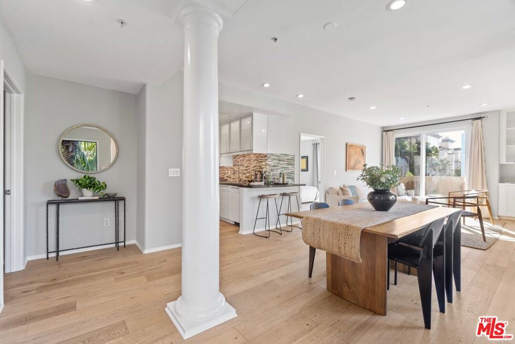 Live the resort lifestyle in the heart of the Marina Arts District at this rare, sun-filled 3-bedroom, 3-bath condo in Del Rey Terrace. Nestled in an exclusive, private wing of the community, this elevated corner unit is surrounded by windows on all four sides with no shared side walls, offering the privacy of a single-family home with the added security, ease and amenities of condo living. // Step through your private entry walkway into a thoughtfully upgraded residence that blends comfort and sophistication. The kitchen is a modern culinary haven, featuring sleek black quartz countertops, under-cabinet and drawer lighting, a breakfast bar, and stainless steel appliances. The spacious open-concept living area is framed by glass sliding doors on both sides, allowing natural light to pour in while offering lush views of swaying palms and blooming jacarandas. A cozy fireplace and upgraded elegant flooring anchors the space, creating a warm and inviting atmosphere ideal for both entertaining and everyday living. A mounted 77″ OLED TV on a pull-down swivel arm is included for your enjoyment. //Retreat to the sizable and serene primary suite with a walk-in closet, ensuite bath, and private balcony. The second bedroom on the opposite side of the home offers its own ensuite bathroom, additional private balcony, and calming views of the pool. A third bedroom adds flexibility for a home office, guest room, or creative space. All three bathrooms are full bathrooms with showers and tubs, offering plenty of private space for self care.//Built in the 2000s, this home offers dual-pane windows and sliding glass doors for a quiet and energy-efficient interior. Additional features include central heating and AC, in-unit laundry, recessed lighting throughout, and abundant storage. Smart-home upgrades elevate your daily experience with smart light switches, a Nest thermostat, a Ring alarm system on every window and door, and a Lockly smart lock with fingerprint access. //Del Rey Terrace offers resort-style amenities with an active, very healthy HOA and low association dues: a heated pool and spa, fitness center, clubhouse, media room, package lockers, gated parking, and secure bike storage. Two side-by-side parking spaces in the gated garage come equipped with a dedicated 9KW EV charger. Building elevators offer stairs-free access between the street level, parking, condo, and all amenities on the property. //Perfectly positioned for coastal living, you’re just moments from the bike path to the beach, waterfront dining, a dine-in movie theater, and vibrant local hotspots. Quick access to the 90 freeway makes commuting a breeze. //This home is your key to a comfortable, happy and vibrant lifestyle defined by ease, design, and connection to the best of Westside living.