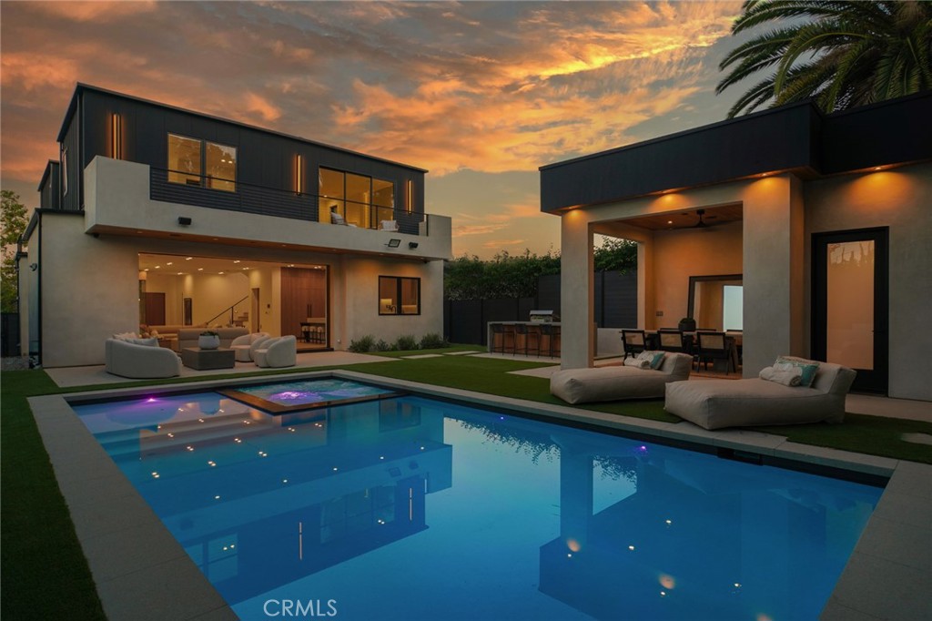 Welcome to this exceptional 5-bedroom, 6.5-bathroom modern masterpiece spanning 5,400 sq ft across three thoughtfully designed levels, complete with ELEVATOR ACCESS to all 3 floors . Perfectly situated just moments from Ventura Blvd, you’ll enjoy unparalleled walkability to some of the city’s best restaurants, cafés, and boutique shopping. As you arrive, the striking architectural façade sets the tone for what lies inside—sophisticated elegance with a contemporary edge. Step into an expansive open-concept floor plan featuring soaring ceilings, sleek finishes, and an abundance of natural light. The gourmet chef’s kitchen seamlessly flows into spacious living and dining areas, creating the ultimate entertainer’s layout. Floor-to-ceiling glass doors open to a backyard oasis, where a sparkling pool, spa, and outdoor cabana offer the perfect setting for both relaxation and gatherings under the California sun. Five generously sized bedrooms include a luxurious primary suite with a spa-inspired bathroom, an expansive walk-in closet, and a private balcony showcasing stunning views of the surrounding greenery. From this vantage point, you’ll feel immersed in nature, with lush trees wrapping the property in beauty and privacy. Every secondary bedroom is en-suite, providing comfort and seclusion for family and guests. A private home theater delivers the ultimate cinematic experience, while the stylish bar in the basement makes entertaining effortless. The home also includes designer walk-in closets, custom cabinetry, a two-car garage with a sleek wood-paneled door, and outdoor dining and lounging spaces designed for year-round enjoyment. With an elevator providing easy access to all three levels, every detail has been carefully crafted for both luxury and convenience. This home blends lifestyle and sophistication in one of the most desirable locations in Sherman Oaks. With its thoughtful design, high-end amenities, breathtaking views, and prime proximity to Ventura Blvd, this property is more than just a home—it’s a lifestyle statement.