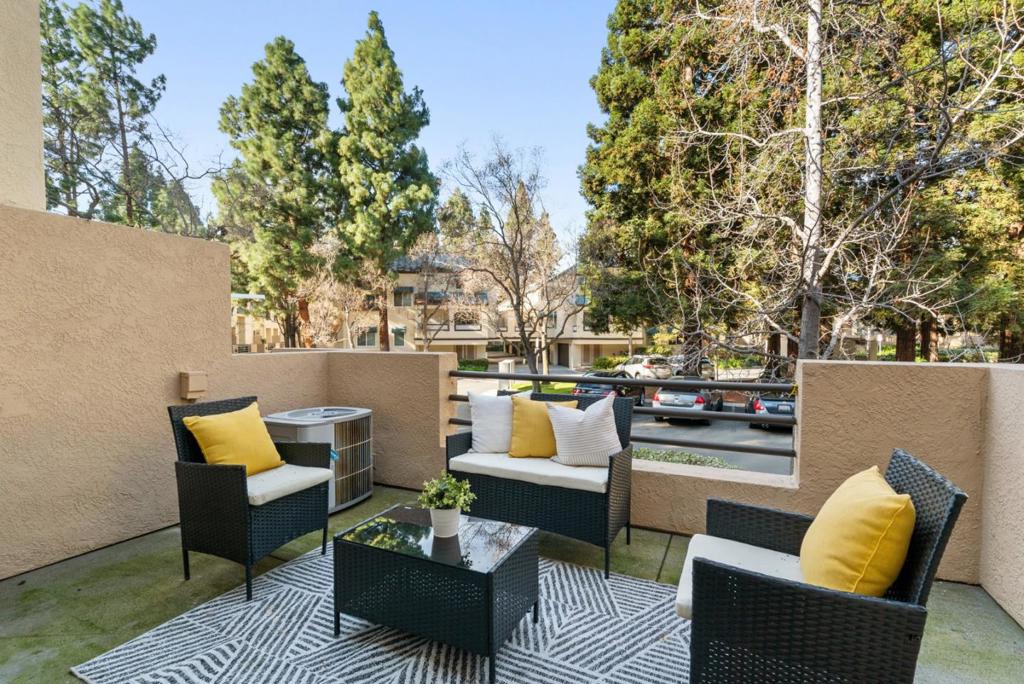 Nestled in the serene Galleria at River Oaks, this beautifully remodeled home offers incredible convenience and modern living. A charming front patio welcomes you to a grand entrance with soaring ceilings and an abundance of natural light pouring in through stunning floor-to-ceiling windows. The cozy living room, complete with a fireplace, and the elegant dining area create the perfect setting for hosting. The chef’s kitchen, featuring a bay window overlooking the back patio, boasts quartz countertops, high-gloss lacquered white cabinets with sleek flat-panel doors, and smart appliances for ultimate functionality. Spacious bedrooms, plus a versatile loft ideal for a study. Upstairs primary suite is a true retreat with vaulted ceilings, a walk-in closet, and a modern bathroom featuring double vanities and a LED mirror. Gorgeous new laminate flooring, central AC/heating, inside laundry, and an EV ready 2 car side-by-side garage. Low HOA, beautifully landscaped grounds, and amenities. Exceptional location, minutes from major employers like Cisco, Cadence, Nvidia and tech shuttles. Easy access to major highways 101/880/237, VTA, BART, and a wealth of shopping, dining, and recreation. Near the new Agnew schools in Santa Clara School District, River Oaks Park, and Iris Chang Park.