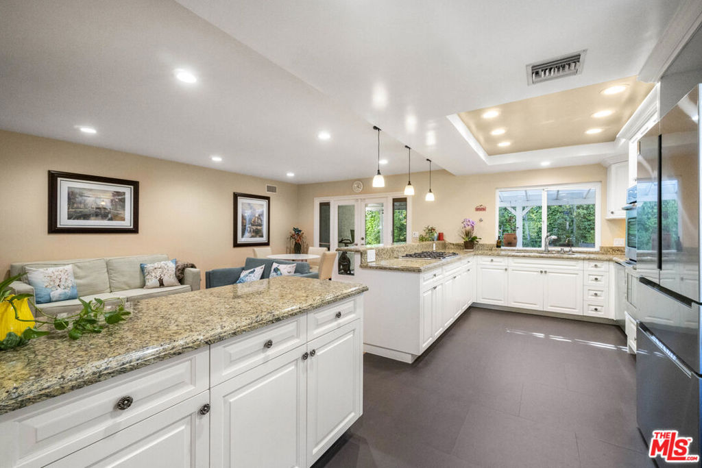 Big Price Reduction- Sellers are motivated! This is your Idyllic single-story masterpiece in the prestigious gated Braewood Community of Calabasas. This remodeled 3-bedroom, 2-bath residence with a brand new Roof sets a new standard for luxury living, complete with a Tesla charger, New electric panel and cutting-edge solar panels. Step into an expansive, light-filled floorplan featuring a formal living room with a cozy fireplace and a sophisticated formal dining area. The open-concept kitchen and family room are a culinary dream, boasting a stylish breakfast bar with pendant lighting, top-of-the-line stainless steel appliances, granite countertops, recessed lighting, and custom white cabinetry. The grand master bedroom with custom made closet is a serene retreat with vaulted ceilings, double doors opening to a private backyard patio, and a lavish master bath. Indulge in the upgraded vanity and an oversized shower adorned with designer marble and tile. The secondary bedrooms are spacious and inviting, while the secondary bathroom is equally luxurious with a custom vanity and designer tile. Additional features include new double pane windows, elegant shutters, remote-controlled shades, upgraded LED lighting throughout, a convenient indoor laundry room, and a 2-car garage with ample storage and an EV charger. The custom interior closets and kitchen pull-outs were crafted by a professional organizer, adding to the home’s functionality and style. The backyard is an oasis of privacy and tranquility, featuring a covered brick patio, multiple seating areas, a lush grass area, fruit trees, a large dog run, and an advanced irrigation system and oudoor lighting complemented by new landscaping. Situated on an expansive 9,800 sq. ft. lot, this home is the epitome of move-in-ready elegance for the most discerning buyer. Location is paramount, and this home excels with its proximity to all local schools, premier shopping destinations, including the Calabasas Commons, Topanga Village, and El Camino Shopping Center. Enjoy easy access to Topanga Canyon and the 101 Freeway, making commutes a breeze. Plus, a quick drive takes you to the beautiful beaches, adding to the allure of this exceptional property. Don’t miss This incredible opportunity to be part of this unique gated community.