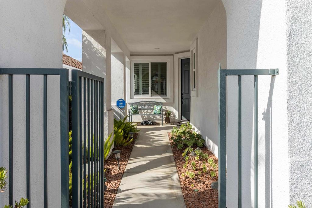 Rarely available, single-story detached Syros model in the highly desirable Portofino Village at Ocean Hills Country Club. This immaculate, updated home is truly move-in ready. The intelligently designed floor plan features a spacious combined living and dining area plus an open-concept kitchen and den, ideal for everyday living and entertaining. A large, thoughtfully positioned picture window frames sweeping neighborhood views to the west, offering beautiful sunsets on clear days. All windows and doors are dual pane for comfort and energy efficiency. Direct access from the home to the garage adds everyday convenience. The spotless garage, with its finished painted floor, offers an impressive amount of additional closet and storage space, as well as a dedicated side area with a workbench for hobbies or projects. This Syros layout is one of the most desirable single-story floor plans in the community, and this particular home is among the newer residences in Ocean Hills Country Club, built in 1999. Located within the premier 55+ gated community of Ocean Hills Country Club, residents enjoy a resort-style lifestyle with an 18-hole executive golf course, a stunning clubhouse, solar-heated junior Olympic–sized pool and spa, tennis and pickleball courts, fitness center, dog park, and miles of walking paths. A wide variety of clubs, classes, and social activities make it easy to connect with neighbors and enjoy an active, low-maintenance lifestyle just a short drive from the beaches, shopping, and dining of coastal North County. Now is your chance to own a beautifully maintained, newer single-story home in one of the most sought-after villages in Ocean Hills Country Club.