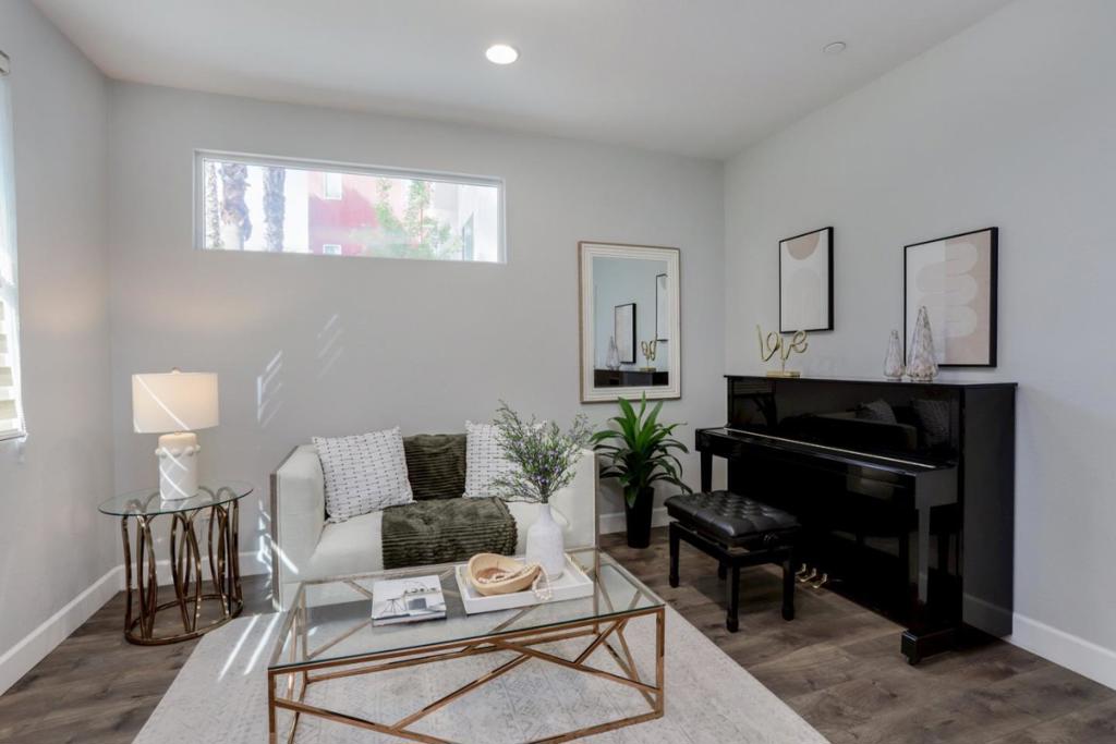 Luxury Townhome by Taylor Morrison purchased new in 2017 in the highly desired Station 121 which offers the incredible LOW HOA $242 monthly. This south facing home is next to guest parking so your guests do not have to walk but a few feet. You can enjoy a cup of tea on your porch or relax on your deck; the Den downstairs can be used as an office or a perfect place for the kids to play; of course we are next to a 10.6 acre park. Kitchen is fully furnished with stainless steel appliances, gas stove top, beautiful cabinets, quartz counter tops with large island for breakfast bar. Dining area floor has easy to maintain tile floors and laminate flooring in living room. There are 3 bedrooms plus a Den, 2 full-baths and 2 half baths, the spacious Master Suite with a walk-in closet, elegant dual sinks with a separate shower, and an upstairs laundry room. Downstairs, there is an attached side-by-side 2-car oversized garage, which also houses the tankless water heater. Walking distance to the newly built Village Oaks Shopping Center and Target, Starbucks, Safeway, Costco, Lowes and more. Right by the CalTrain station and a short walk to Light Rail. Conveniently close to Highways 85, 87 and 101.