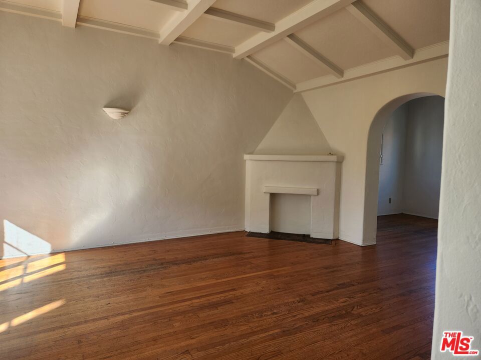 Oversized and charming Spanish style apartment located near the Grove. French windows and hardwood floors throughout. Separate living room and dining room. Includes stove and refrigerator. Laundry room on site. Street parking only.