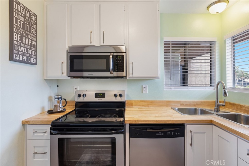 Fantastic views in this private, top floor Condo. Incredible, unobstructed views overlooking Downtown Long Beach from your private balcony & bedroom window, from your kitchen window, view the Gerald Desmond Bridge & the park. Take a walk across the street to Cesar Chavez park and enjoy a nice picnic under one of the many trees. This remodeled, one bedroom, one bath has everything you’re looking for in downtown Long Beach. Are you looking for a unit that has a lot of natural light? Watch the sun rise from your living room and balcony, watch the sunset from your kitchen window. This unit has a lot of natural light perfect for plants while you soak in all that good morning sunlight for your dose of vitamin D. The entry features a hallway to the living room with recessed lights & updated flooring throughout. Cool off on those summer days with a mini split air conditioner. The remodeled kitchen includes stylish butcher block counter tops, lower white shaker cabinets with soft-closing drawers with new kitchen cabinet handles, new kitchen blinds, freshly painted kitchen walls to complement the view of the park’s green grass & trees from the kitchen window, all Frigidaire appliances are included. The bedroom can accommodate all your bedroom furnishings as well as a desk for those who work from home. The bedroom also has an ensuite walk-in closet that can hold an ample amount of storage. The updated bathroom includes new paint to complement the modern Evoque Arte Porcelain Patterned Floor tile, new vanity, Moen Genta double handle bathroom faucet, light fixture, and new tub and shower trim. This unit will satisfy all of your “must haves” which include a in unit washer & dryer, a window in the bathroom, a deeded parking space within a secure gated complex, the complex has a updated elevator, located close to downtown, location, location, location, public transportation, Pine Avenue, The Pike, Queen Mary, Aquarium of the Pacific, great restaurants and shopping. HOA includes Earthquake Insurance, water, and trash along with common area upkeep. Pet friendly community. This unit is great for first time home buyers. The building is FHA and VA Approved!