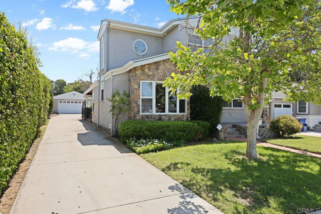 A Charming 3 bedroom, 2 bathroom home on the La Mesa side of Rolando. Original hardwood floors in most of the downstairs, nice kitchen with great counter and cabinet space also a stackable washer and dryer in laundry closet with storage. One bedroom downstairs and 2 upstairs. Great family room in the back of the house opens up to covered patio and large level yard with a ton of potential. This home has a long driveway that could fit at least 7 cars going to the backyard where there is a large oversized detached garage. This property is also zoned R-2.