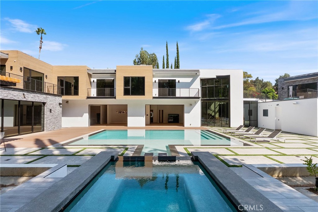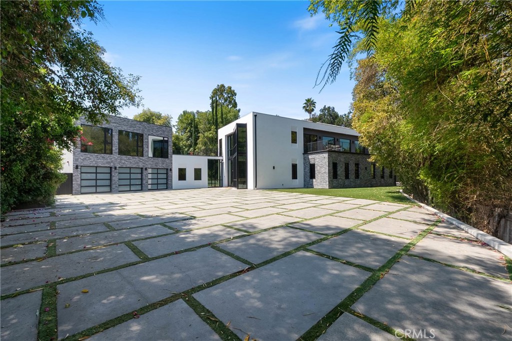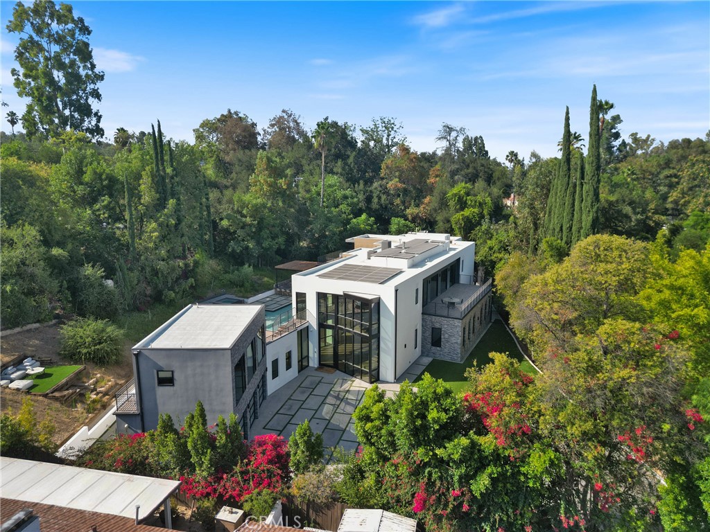 Welcome to your private sanctuary, nestled on a sprawling .68 acre wooded lot. Situated on a flag lot, this estate sits far from the street, ensuring unmatched privacy. A gated entrance and extended driveway lead to a spacious three car garage, with ample additional parking for guests. Step through the breathtaking glass entryway, where soaring 32-foot ceilings, a dramatic chandelier, and striking white oak floating stairs set the stage for this architectural masterpiece. Walls of glass and Fleetwood sliding doors seamlessly blend indoor and outdoor living, flooding the space with natural light and creating an entertainer’s dream. The open concept layout is anchored by stunning oak floors and a sophisticated Italian designed kitchen, featuring a hidden oversized pantry and a wine fridge, perfectly positioned beside an elegant formal dining area. The lower level boasts two ensuite bedrooms, a private office, and a state-of-the-art theater, ensuring ultimate comfort and convenience. Upstairs, the primary suite is a true retreat, complete with a cozy fireplace, a custom walk-in closet, and a spa inspired bath. A private sitting area and relaxation patio offer a peaceful escape. Above the garage, a versatile space awaits, ideal for a gym, studio, or guest quarters, opening onto a spacious outdoor terrace. Step outside into an entertainer’s paradise, featuring a zero edge saltwater pool and spa, a sleek cabana, a fully equipped pool house, and a basketball court. Multiple outdoor patios provide the perfect setting for dining and relaxation, while paid-for solar panels add a modern touch of efficiency. Experience the pinnacle of luxury living, where privacy, elegance, and resort style amenities come together in perfect harmony.