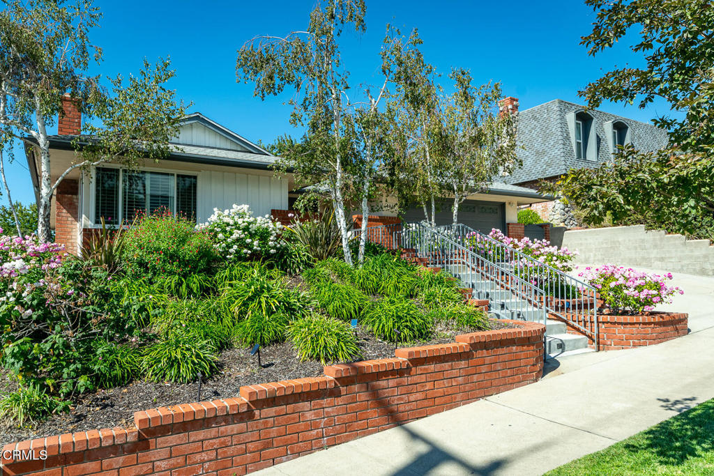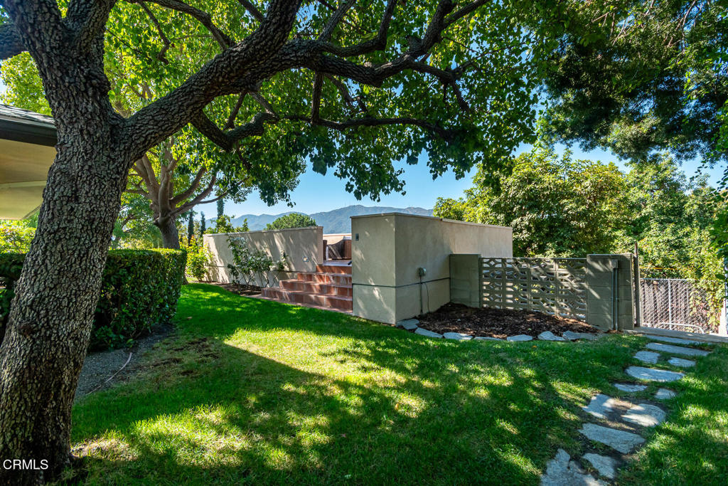 This Mid-century custom-built view home located in the Crescenta Valley Highlands, is on the market for the first time ever! Elevated from the tree-lined street, a slate entry welcomes you to this well-maintained home, adorned with hardwood floors, recessed lighting, and a wonderful floor plan. The spacious living room features a brick front gas fireplace and wraparound window with plantation shutters, giving it a bright and airy feel. Around the corner is the dining room with skylights to illuminate the space, and the graceful kitchen accented with counter seating, a garden window, and attractive cabinetry. Down the hall lie the four bedrooms and two baths. The generous primary suite offers views of the mountains and a full bath with Corian counters, dual vanity, and separate tub/shower room. The fourth bedroom, currently used as an office, features a wall of built-ins and a closet. Off the kitchen is an attached 2 car garage with direct access to home and a Level 2 EV charger. In the mood to dine al fresco? Step through the sliding glass door in the kitchen to the brick patio and pergola … a great spot to enjoy the private and serene backyard against the backdrop of the mountains. Beyond the pergola is a grassy yard and an elevated patio, offering countless entertaining opportunities and stunning views of the Verdugo Mountains. A staircase takes you to the incredible separate 372 sq. ft. accessory building currently used as an office, built in 2004. This light and bright building, features French doors on either end, large picture windows. recessed lighting and a heat and air system. Lots of possibilities to make this space your own. All this plus award-winning La Crescenta schools!