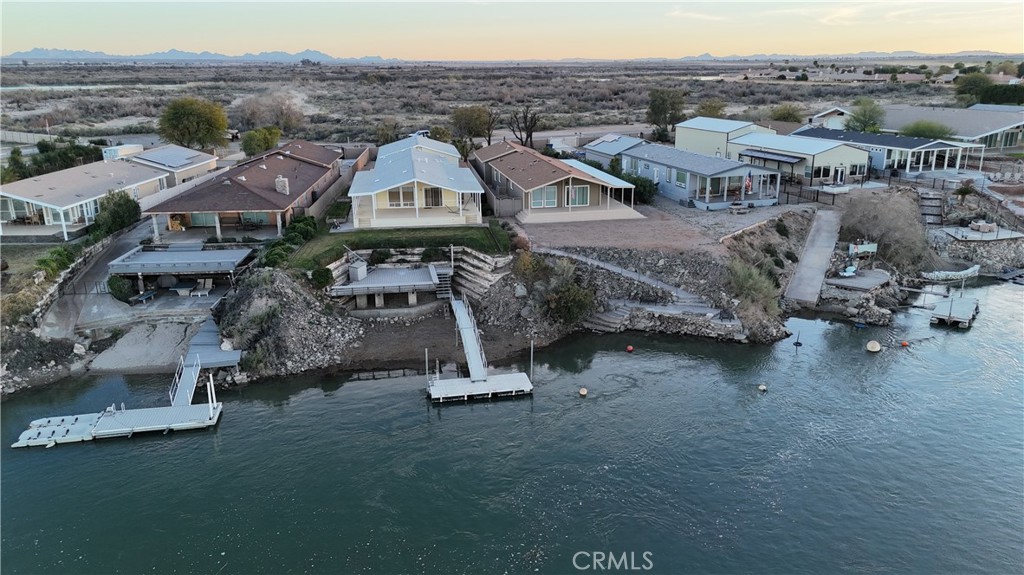 Escape to the Colorado River with this river front property and private boat dock an no HOA! This well maintained, one of a kind home boasts a large covered porch with river views, a lounge deck just above the permanent boat dock and a detached garage with a 6 car capacity to store all the things needed for river or desert fun! The lawn is well groomed with just enough grass to keep you grounded and a horseshoe pit for friendly games. Inside you will find a spacious kitchen and dining area open to the living room with amazing views of sunrises and sunsets. With 3 bedrooms and 3 bathrooms there is plenty of room for sleeping and getting ready for adventure.