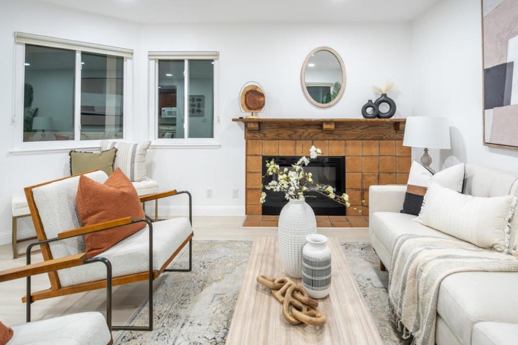 An incredible chance to own this charming condo in serene Lakeside Commons. This two-story home offers 2 bedrooms, 2 bathrooms, and 1,212 SF of living space on a 1,980 SF lot. External stairs lead to a deck entrance opening to a bright, airy floorplan. The interior boasts new paint and flooring, while the spacious living room is filled with natural light through dual-pane windows. The recessed lighting and electric fireplace create a cozy atmosphere. The semi-open kitchen has modern appliances including brand new refrigerator, granite countertops, and a dining area with built-in cabinets. Sliding doors open to a balcony overlooking the pool. First floor also offers a bedroom, bath, and laundry with a washer/dryer. Upstairs features a bedroom with a closet, en-suite bathroom with a standing shower, tiled walls, and a vanity. Additional amenities: 1-car garage, designated carport, pool, spa, gardens, ponds, guest parking. Located in desirable Cambrian Park, very close to Los Gatos downtown with San Jose prices. Walking distance to top schools such as Carlton/Union/Leigh. Nearby Norman Y. Mineta Highway, parks and hospitals provided convenient commuting and living.