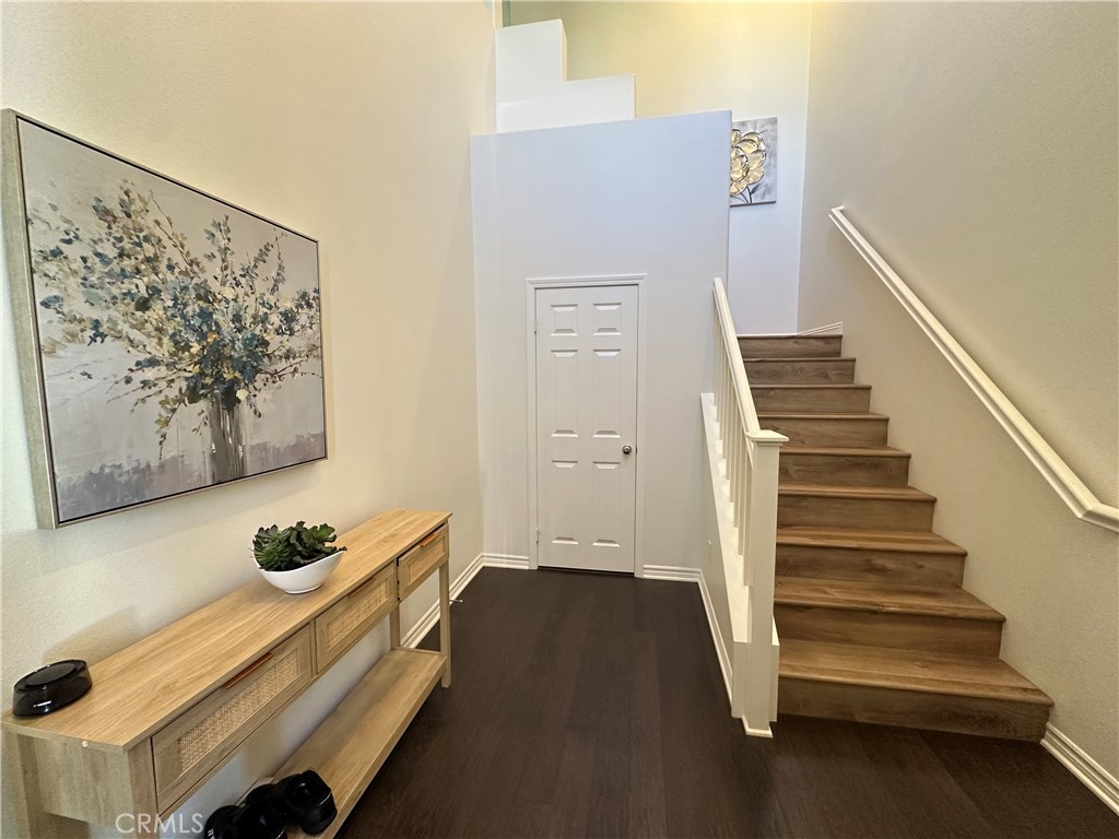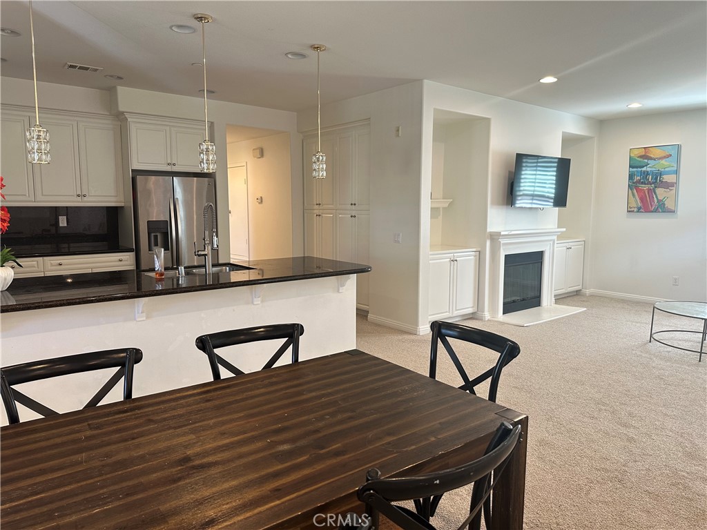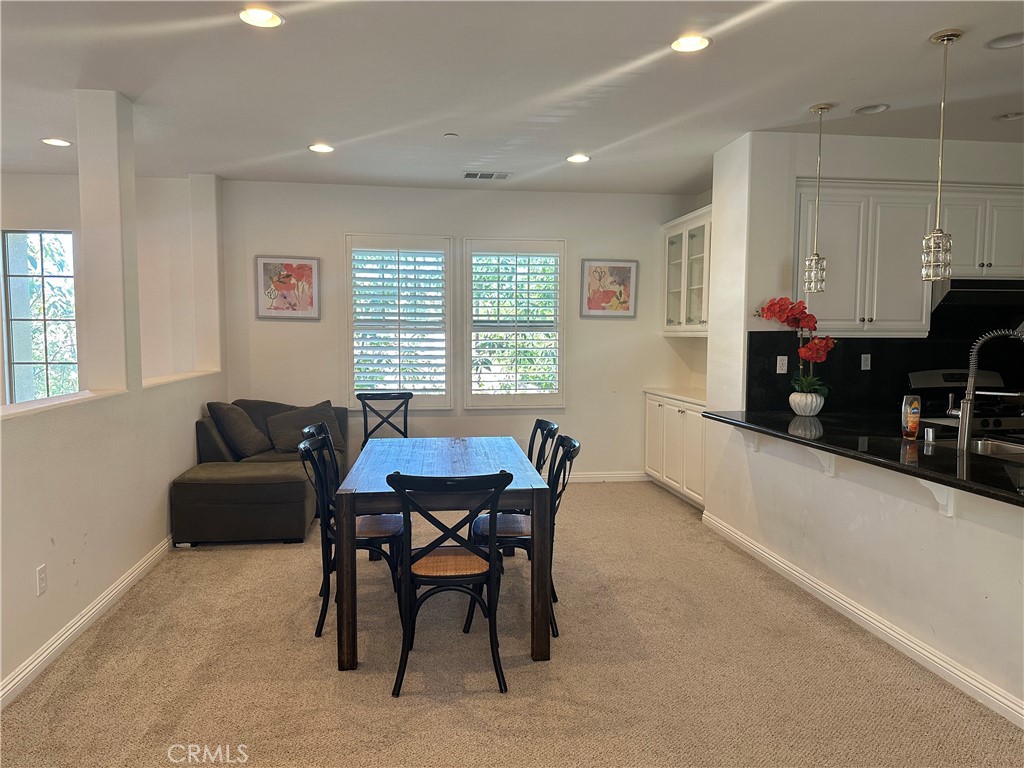 Fully furnished residence. Welcome to this highly desirable Portola Springs spacious condominium! Upon entry through the arched entryway, a two-story foyer welcomes you with abundant natural light. A coat closet with supplementary storage space is located beneath the staircase. Laminate wood flooring provides a neat and tidy ambiance. An open floor plan on the second level features a cozy living room with a fireplace. Built-in glass panel cabinets and expansive windows are situated near the dining area. The spacious kitchen features pendant lighting above the sitting area, complemented by granite countertops. Ample cabinetry and storage space are available in the kitchen and adjacent hallway, serving as a pantry! A ceiling fan is installed in the bedroom. A generously sized master suite offers a large bedroom area, a separate shower and tub, dual sinks, a private toilet room, and a sizable walk-in closet. A dedicated laundry room includes a deep wash sink. A tankless water heater is installed! Community amenities encompass Olympic-size pools, a spa, barbecue areas, picnic tables, basketball courts, and tennis courts. Conveniently located near the 5 Freeway, as well as the 133 and 241 highways. Shopping centers include Woodbury Town Center Plaza, Orchard Hills Village Shopping Center, and the Irvine Spectrum, along with award-winning schools.
