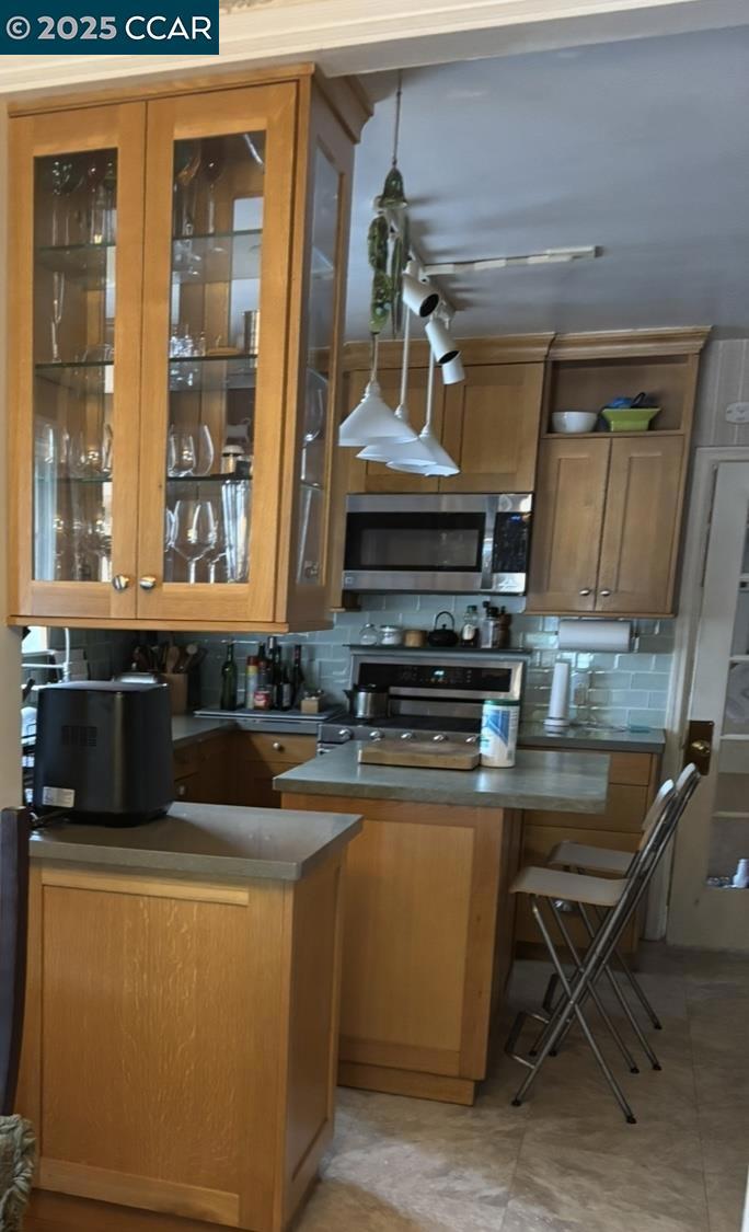 Welcome to this beautifully updated 3-bedroom, 1.5-bathroom home nestled in the heart of San Leandro. Step inside to a bright and inviting living room featuring a cozy gas-lit fireplace, perfect for relaxing evenings. The home sits behind a classic white picket fence and offers great curb appeal with lush front-yard landscaping and mature trees. Enjoy the outdoors in the spacious backyard surrounded by greenery and orange trees—ideal for entertaining, gardening, or quiet retreat. Additional highlights include a two-car garage, modern kitchen appliances (stove, refrigerator), all included in the sale, along with some miscellaneous household items. If you’ve been dreaming of a charming home with timeless character and modern comfort—this is the one for you!