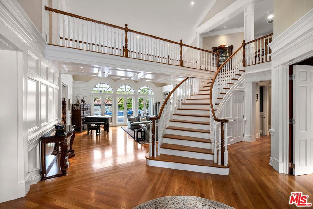 Located within the highly desirable North Ranch Estates of Westlake Village, this exceptional estate offers over 7,000 square feet of refined living space set on more than half an acre of beautifully landscaped grounds. Thoughtfully designed with both elegance and functionality in mind, the home features 5 en-suite bedrooms, 6 bathrooms, and an impressive collection of amenities ideal for both everyday living and grand-scale entertaining. Inside, the residence showcases an elegant media room, a dedicated home office, and a private gym complete with a dry sauna. The chef’s kitchen is a true centerpiece, featuring custom inset cabinetry with pull-out drawers, Sub-Zero, Wolf, and Viking appliances, and a temperature-controlled wine cellar capable of housing approximately 1,000 bottles. The upper level hosts four en-suite bedrooms, each with private balcony access. The primary suite serves as a luxurious retreat, offering a private seating area, vaulted ceilings, dual custom closets, and a spa-inspired bathroom with a full-body shower and wet sauna. The exterior is equally captivating. A grand horseshoe driveway welcomes you home and leads to a three-car garage equipped with dual 220V plugs for electric vehicles. The resort-style backyard is an entertainer’s dream, featuring multiple seating areas, a fire pit, outdoor fireplace, putting green, and a fully equipped outdoor kitchen with an oversized BBQ, Green Egg smoker, and seating for eight. Blending timeless sophistication with modern luxury, this remarkable residence offers an unparalleled lifestyle in one of Westlake Village’s most prestigious communities.