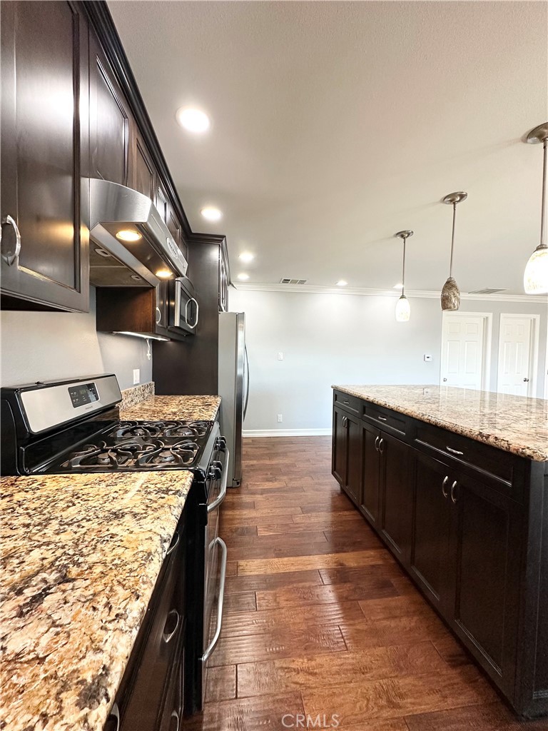 A rear upstairs duplex, has attached 2 car garage, and 2 extra parking, personal gated, patio. 3beds 3baths, with laundry, and kitchen island. All utilities included. The upper rear unit is 1828 sq ft and features a spacious large open concept great room adjacent to the enormous kitchen with granite counter tops, S/S appliances and large eat-in island with wood cabinetry and recessed lighting throughout! The spacious primary bedroom suite has wall to wall carpet installed and an attached 3/4 bathroom and walk in closet. In addition their is a huge storage enclosed space and washer and dryer are both included. There are two additional large guest bedrooms also with new wall to wall carpet. This unit also includes a 2 car garage and lower private patio area, Central HVAC system and upstairs viewing deck with sliding glass entry door! Property has electric meter, gas meter, one water meter and 2 new owned solar energy systems which produces more power than being used by all three units. Close to local freeways, public schools, Cal State Dominguez Hills, shopping & restaurants