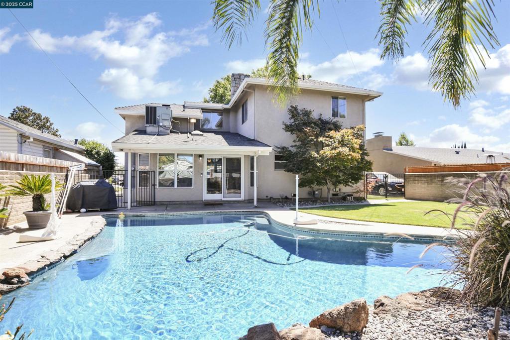 Welcome to this stunning home and let the magic unfold! With its pretty landscaping and a sparkling pool in the backyard, you’ll feel like you’ve been transported to a private paradise. Kick off your shoes and relax in the spacious front living area, where high ceilings and a cozy fireplace set the perfect mood. The kitchen features sleek granite countertops and a seamless flow into the second living space, all bathed in natural light. Upstairs, discover the enormous primary suite. Plus, with a side yard ready to fit your small trailer or boat, adventure is always within reach. But that’s not all – this gem is just minutes away from the Vineyard shopping center and the nearest school, making errands and school runs a breeze. Need quick access to healthcare or the highway? Lodi Memorial is close by as well as minutes from Highway 99 and Interstate 5.