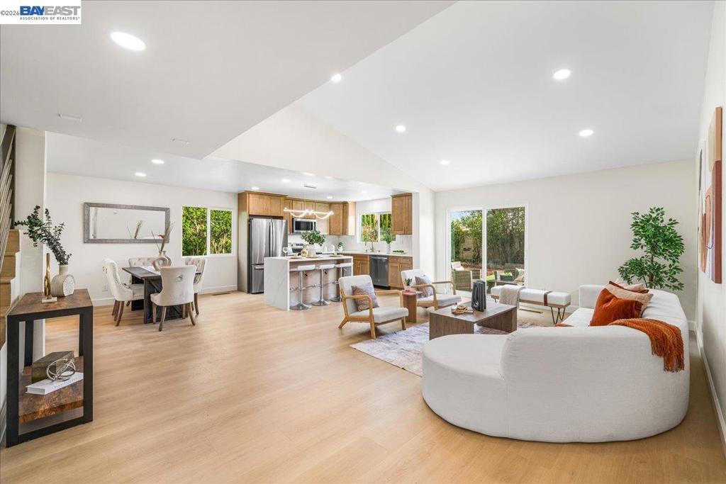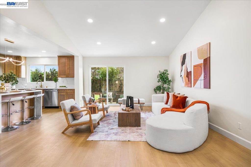 Presenting a stunning, totally remodeled, North Facing house in the highly desirable Warm Springs neighborhood with top-rated Warm Springs & Irvington Schools. This ‘like new’ home features a versatile floor plan: 3 bedrooms and 2 baths downstairs, a 4th bedroom/second primary suite upstairs & a huge bonus room. Step into the open living room with vaulted ceilings and admire the fully renovated kitchen, which boasts custom cabinets, quartz countertops, new S.S. appliances, a pantry, and a large kitchen island. Extensive new features include: luxury vinyl flooring, freshly painted interior & exterior (w/ smooth finish walls & stucco), fully updated kitchen & all 3 bathrooms, new dual pane windows, interior doors, recessed lighting, a fully finished garage (w/new doors & opener), upgraded main electrical, copper plumbing, and a new composition shingle roof. The low-maintenance front & backyards offer new concrete, artificial turf, and plants on a large premium corner lot. Offers plenty of room to expand. Enjoy close proximity to freeways 680, 880, & 237 as well as the Warm Springs BART station.