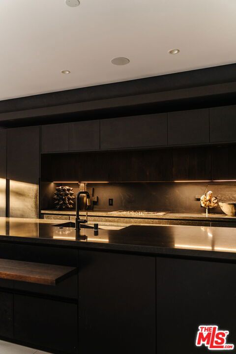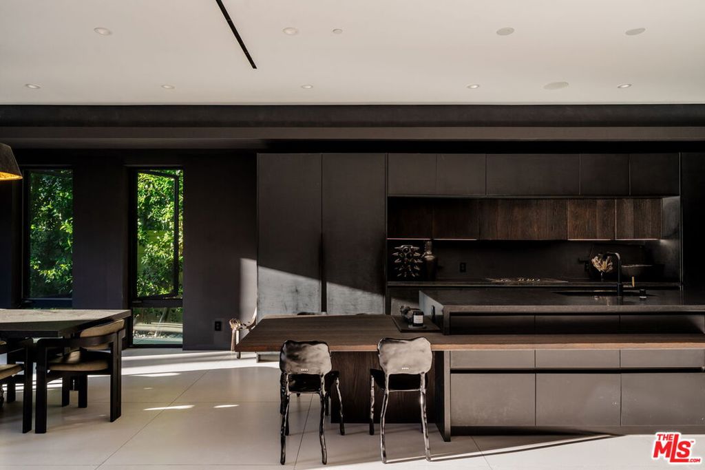 Welcome to 537 N Alta Vista Blvd, an exquisite modern masterpiece built in 2020, offering 4,312 sq ft of curated living space on a secure and gated 7,700 sq ft lot. Through the striking smoked-glass accent entry door, guests are welcomed into a generous open floor plan featuring soaring ceilings and designer finishes throughout. Just off the entry is a sophisticated office featuring custom built-in shelving crafted from Japanese flamed shou sugi ban wood, black Venato marble accents, custom lighting, and a recording studio. The sleek gourmet chef’s kitchen is equipped with dual wall ovens, an espresso machine, a custom walk-in pantry, and an oversized center island with a prep sink and integrated breakfast table. The kitchen flows seamlessly into the dining area and spacious living room, complete with a stone fireplace, custom bookshelves, and floor-to-ceiling pocket doors that open to the ultimate entertainer’s backyard. Upstairs, the luxurious primary suite features a dramatic custom wall of raw Pierre Blue stone imported from Belgium, bespoke Japanese flamed shou sugi ban woodwork, a projector screen, fireplace, private balcony, and two generous walk-in closetsone of which includes a custom pink rose onyx makeup room. The spa-like primary bath offers a custom dual vanity with Black Zimbabwe stone, heated floors, a Japanese soaking tub, an oversized glass rain shower, and a separate water closet with a Toto toilet. Two spacious en-suite guest bedrooms complete the upper level. Designed for year-round entertaining, the oversized backyard features a sparkling pool with elevated spa, outdoor BBQ center, grassy lawn, fire pit, and an enclosed cabana with outdoor bathroom. Additional amenities include a Control4 smart home automation system, koi pond, security cameras, a water filtration system, and surround sound throughout. This home exemplifies the very best of California living, located near some of the world’s finest restaurants, shopping, and entertainment. Showings by appointment only with 24 hours notice.