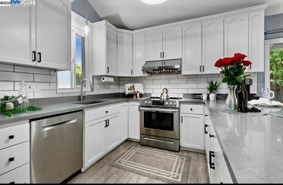 This fully renovated single-story home has 3-bedrooms and an office perfect for the new live+work lifestyle. This home features high ceilings for a spacious living room and an open kitchen concept with quartz countertops, new stainless steel appliances, and durable engineered wood floors that create a warm and comfortable living space. The seamless floor flows into the newly updated bathrooms with gorgeous tile surrounds, bold colors, and designer hardware. The home opens up to the yard as well as an Eichler-esque atrium to keep the home cool as well as providing ample natural light. For those unbearable hot summer days, the home also comes equipped with newly added central Air Conditioning. Come see this spectacular home – you don’t want to miss this!