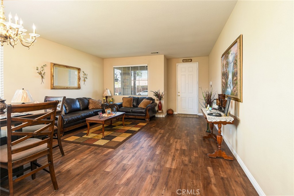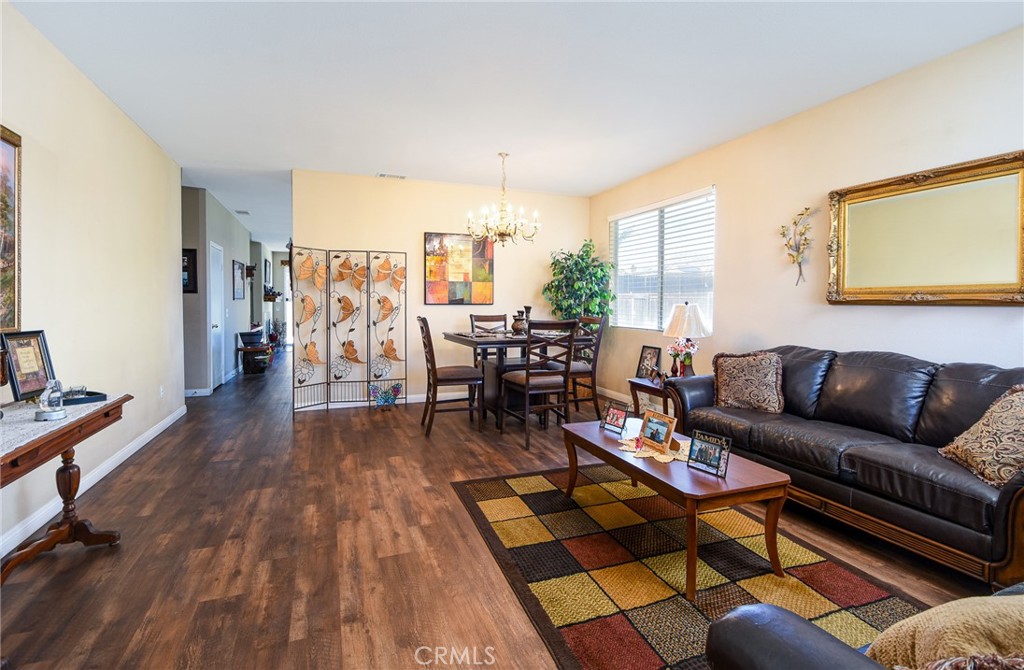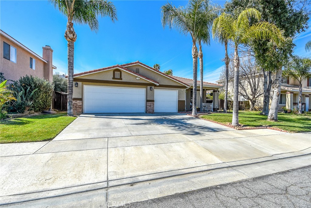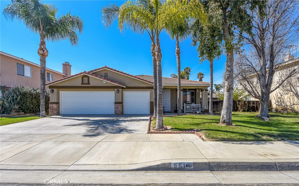 Beautiful single story home located in West Hemet offers 3 bedrooms (possible 4th) 2 full bathrooms with 2047sqft. Spacious home has laminate flooring with a shared living and dining area that is comfortable in space and than continues into a bright and open kitchen with granite counters, center island and stainless steel appliances. Large family room with media niche and cozy fireplace with slider to back yard. 3 car garage with epoxy flooring. Backyard has great side space and is private. No HOA- No Mello Roos-No Solar. Must see to appreciate!