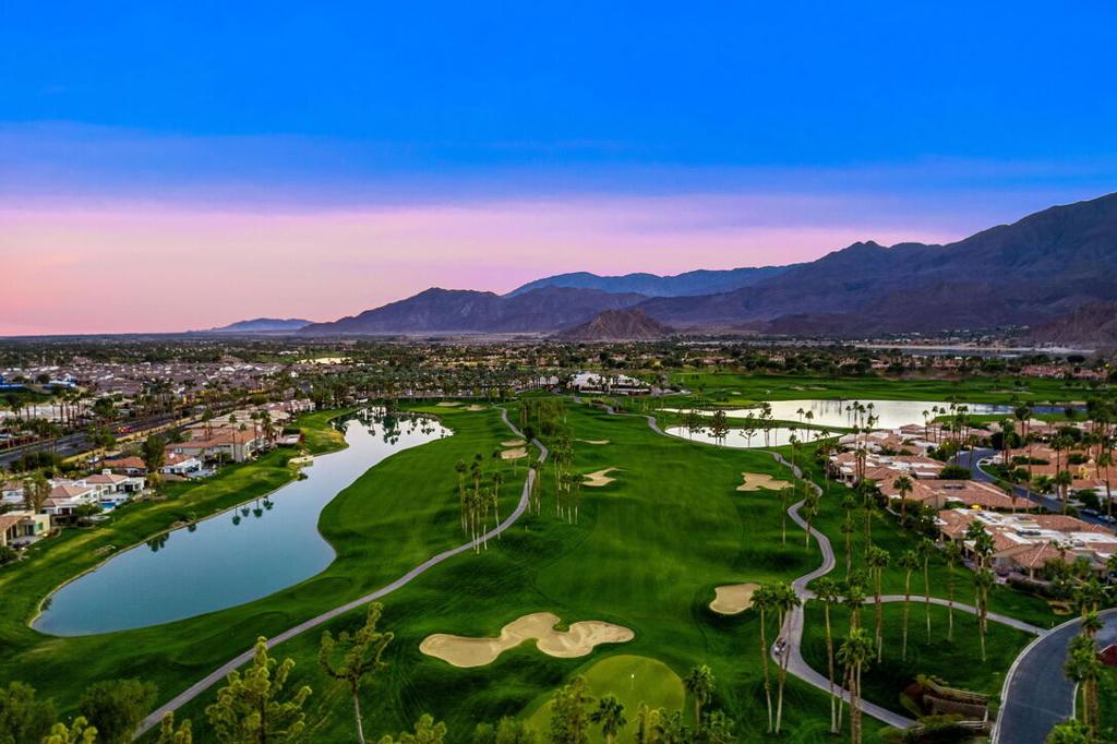 **GOLFERS SPECIAL** PREMIER GOLF MEMBERSHIP PURCHASE REQUIRED** and Seller to help contribute to initiation fee. Offered furnished, including two golf carts! Behind the Palmer Private Gate at PGA West sits a well-appointed Legends 40 Plan on a quiet side street, looking onto the #1 Fairway of the Palmer Private Course. Enter the Private courtyard leading to this spacious lot. Step inside to the welcoming foyer overlooking the atrium that brings excellent light into this home. Large living room with fireplace for those chilly nights, wet bar off the formal dining area! This kitchen is a cook’s dream with warm wood cabinetry, ample storage space, granite slab counters, a prep island, and a bar counter for additional seating. The kitchen overlooks the family room, which creates a great social setting. The updated primary bedroom has a spa-like bathroom with a soaking tub, double vanities with granite finishes, a walk-in shower, and a walk-in closet. Your friends and family will enjoy the two guest rooms offering their en-suites. There is plenty of patio space for outdoor dining or just relaxing. Just steps away from the community pool & spa. PGA West features 3 Private and 3 Public courses, tennis, pickleball, three clubhouses, restaurants, and more. HOAs include building, landscaping, irrigation water/equipment, exterior paint, roof, cable, internet, trash, and 24-hour guarded gated security. Please have a look at the attached documents for information on Membership.