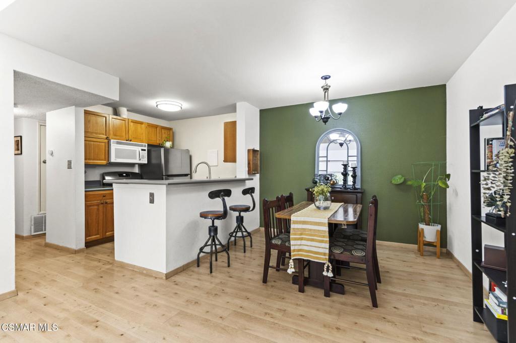 Welcome to this bright, light-filled top floor, 2 bedroom, 1 bath condominium in the sought-after California Village community! This stylish home features a spacious open floor plan featuring a kitchen that opens to a living room with vaulted ceilings and motorized curtains for the upper windows. The primary bedroom offers a walk-in closet and a private balcony provides serene tree-top views.Community amenities include a pool, jacuzzi, club house, gated entry with overnight security, and two side-by-side parking spaces. HOA dues cover water, trash, weekly complex cleaning, pool/jacuzzi maintenance, tree trimming, and overnight security. Recent building upgrades include a new roof installed in 2024. Conveniently located near Ventura Boulevard dining and shopping, Providence Cedars-Sinai Tarzana Medical Center, parks, and the 101 Freeway.