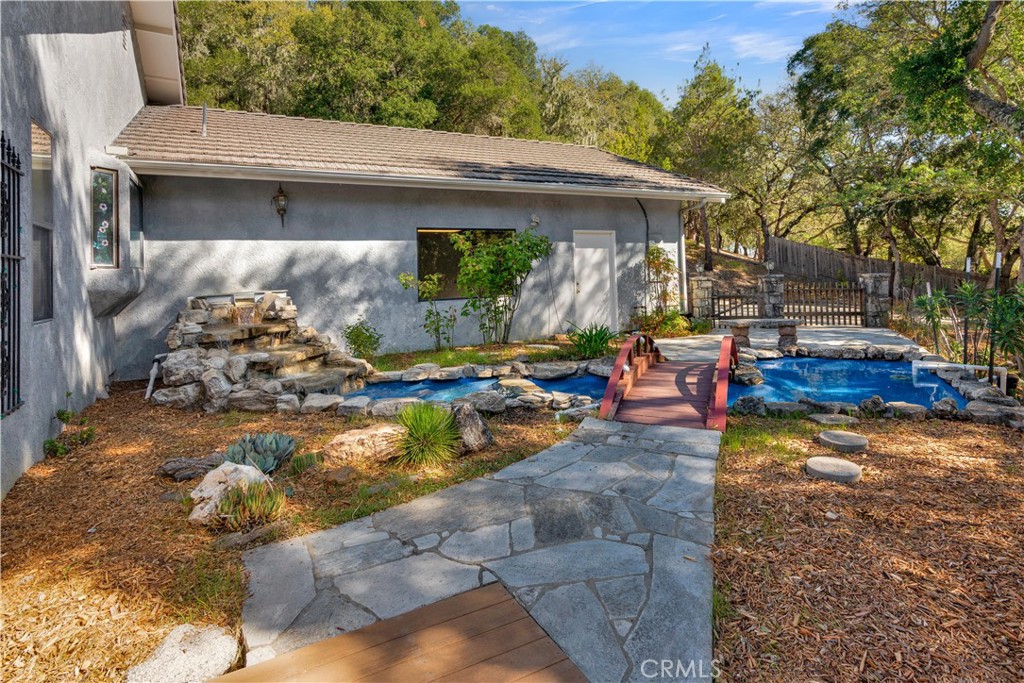 Nestled among majestic oaks on approximately 1.38 acres, this 2,775+/- sq. ft. custom-built home in West Atascadero perfectly blends craftsmanship, comfort, and Central Coast charm. From the moment you arrive, the property’s beauty stands out—an elegant entry pond with a footbridge and a front view deck set a tone of tranquility and refinement. Inside, an open floor plan welcomes you with soaring cathedral ceilings and a magnificent stone fireplace featuring a wood-burning stove as the centerpiece of the spacious living room. Expansive picture windows flood the home with natural light and frame the surrounding oak-studded views, creating an atmosphere that feels both grand and inviting. The island kitchen showcases custom cabinetry, generous workspace, and seamless flow into the dining and living areas—perfect for gatherings or everyday living. A cozy family nook with its own wood-burning stove offers an intimate retreat for relaxing evenings. Each of the three bedrooms includes its own en suite bathroom, offering comfort and privacy for family and guests alike. The palatial primary suite features a spa-inspired bath and peaceful views of the trees, while the expansive loft serves as the third bedroom, complete with its own bath and sweeping views over the living room and surrounding landscape. Additional features include a spectacular sun room, indoor laundry room, two-car main garage, and a lower-level one-car garage ideal for a third car, workshop, or studio. Outside, the oak-shaded property provides natural beauty, privacy, and space to unwind. Located close to top-rated schools, shopping, and the vibrant downtown Atascadero scene, this luxury opportunity combines rural serenity with modern convenience. A true Central Coast sanctuary—crafted with heart, designed for living, and ready to welcome you home.