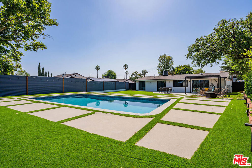 FULLY-FURNISHED, FULLY-EQUIPPED HOME. AVAILABLE FOR SHORT AND LONG STAYS. Ideal location in peaceful Woodland Hills neighborhood minutes away from plenty of restaurants, shops, & entertainment on Ventura Blvd. Resort-like backyard w/ in-ground pool & tanning beds. Covered patio w/ outdoor furniture, BBQ, & outdoor dining. Master bedroom w/ smart TV & walk-in closet. Second bedroom w/ stunning glass doors for backyard views. Wall-to-wall hardwood flooring & large windows welcoming natural light into the home. Fully-stocked kitchen w/ chef grade appliances, bar seating & dining. EV charger outlet outside. Guest house on the premise. Listed price is based on a one year rental. Please inquire for short term rates.