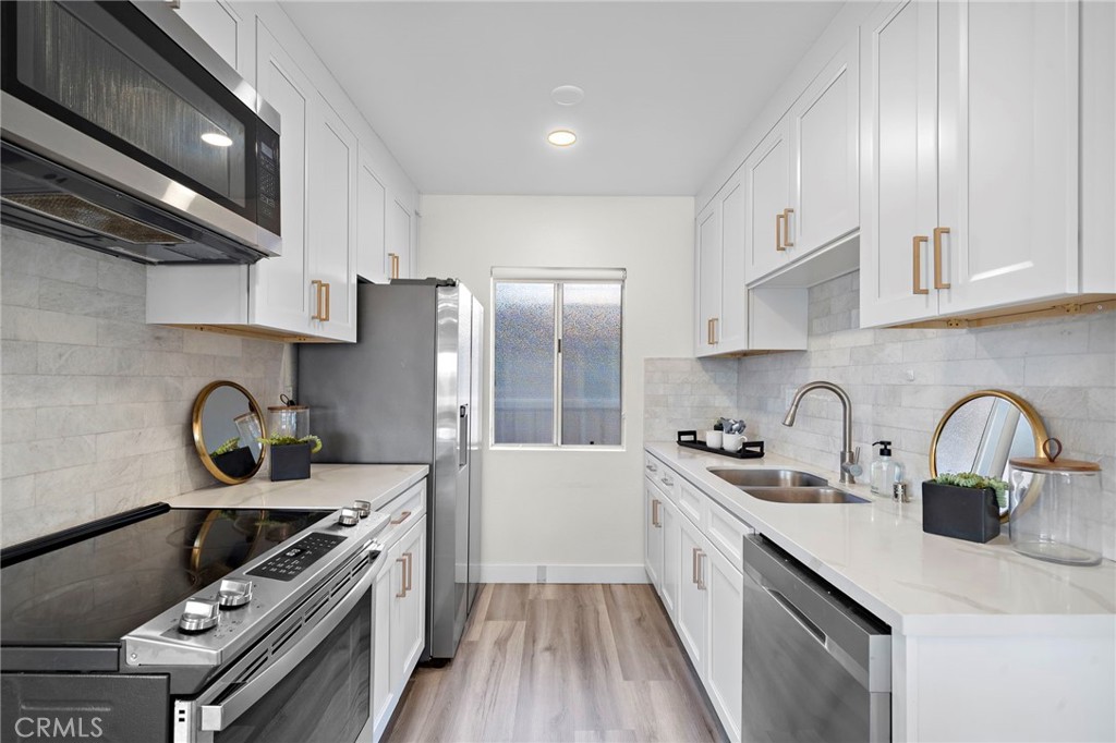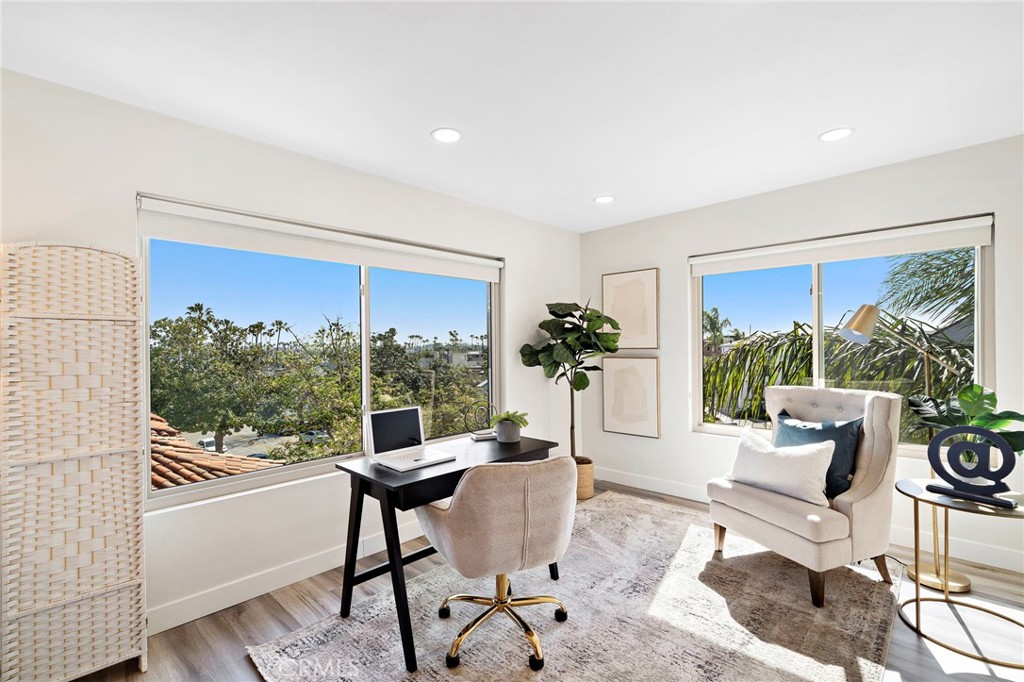 Welcome to this panoramic ocean view penthouse condo in Naples which is fully bathed in natural light! This exquisitely remodeled home is a corner top floor unit, only one building away from the Naples Bay. The home has been fully remodeled, including a new kitchen with top of the line finishes and appliances, including shaker cabinets and quartz countertops, new stainless steel appliances, recessed lighting and vinyl plank flooring throughout. The bathroom includes dual sinks, quartz countertops, gorgeous tile and a marble shower with a Rainfall Shower Head System. The master bedroom features a Juliet balcony with ocean breezes and a stunning view of the Naples Bay. The second bedroom wall was opened up to allow for panoramic views and natural light into the entire condo, and that second bedroom wall could be easily added back. The building includes a shared, fully accessible and spacious rooftop deck with panoramic 360 degree, dramatic coastal and city views and spectacular sunsets. At the entrance of the corner unit, you can also enjoy palm trees and the close Ocean view from chairs facing floor to ceiling windows. The condo includes one gated parking spot #18, with storage closets, and there is a gated locked area for bikes. The condominium is located only one building from the water surrounded by multi-million dollar homes in the top rated Naples Elementary school area. ou couldn’t ask for a better location, only steps from the ocean at the Naples Plaza Roundabout Park and within walking distance to restaurants, bars, beaches, the Long Beach marina, the new 2nd and PCH shopping center, and Belmont Shore. This is also an excellent location to be positioned for the 2028 Olympics in Long Beach.This one of a kind find is truly a gorgeous beach home you will not want to miss!