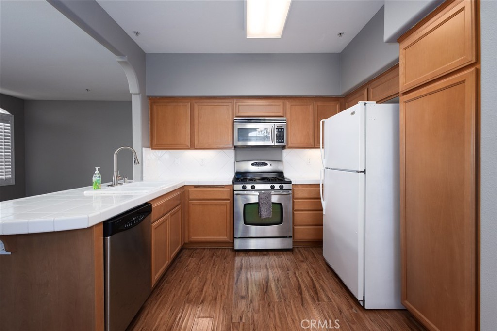 Welcome to this bright and inviting upper level 2 bedroom 2 bath condo situated in the desirable Mission Creek Village community, offering low HOA fees and exceptional amenities. This move- in ready home features a spacious open layout filled with natural light and a private patio that seamlessly extends your living space outdoors, perfect for relaxing or entertaining. The kitchen offers generous cabinetry and ample counter space, opening to the living area for easy everyday living. Tasteful plantations shutters throughout add both style and privacy. The open and airy floor plan includes a spacious primary suite with walk-in closet and a large en-suite bathroom featuring a double sink vanity. The second bedroom is generously sized and ideal for guests, a home office or additional living space. Enjoy the convenience of inside laundry with stackable washer and dryer included. Guest parking is located just steps from the unit, along with two assigned carports for added convenience. Mission Creek Village offers a beautifully maintained setting with a large swimming pool, Clubhouse and exterior maintenance. This turnkey condo is situated close to parks, shopping, restaurants and easy freeway access, this home combines comfort, convenience and value. Don’t miss the opportunity to own in this sought-after community.
