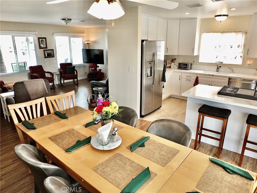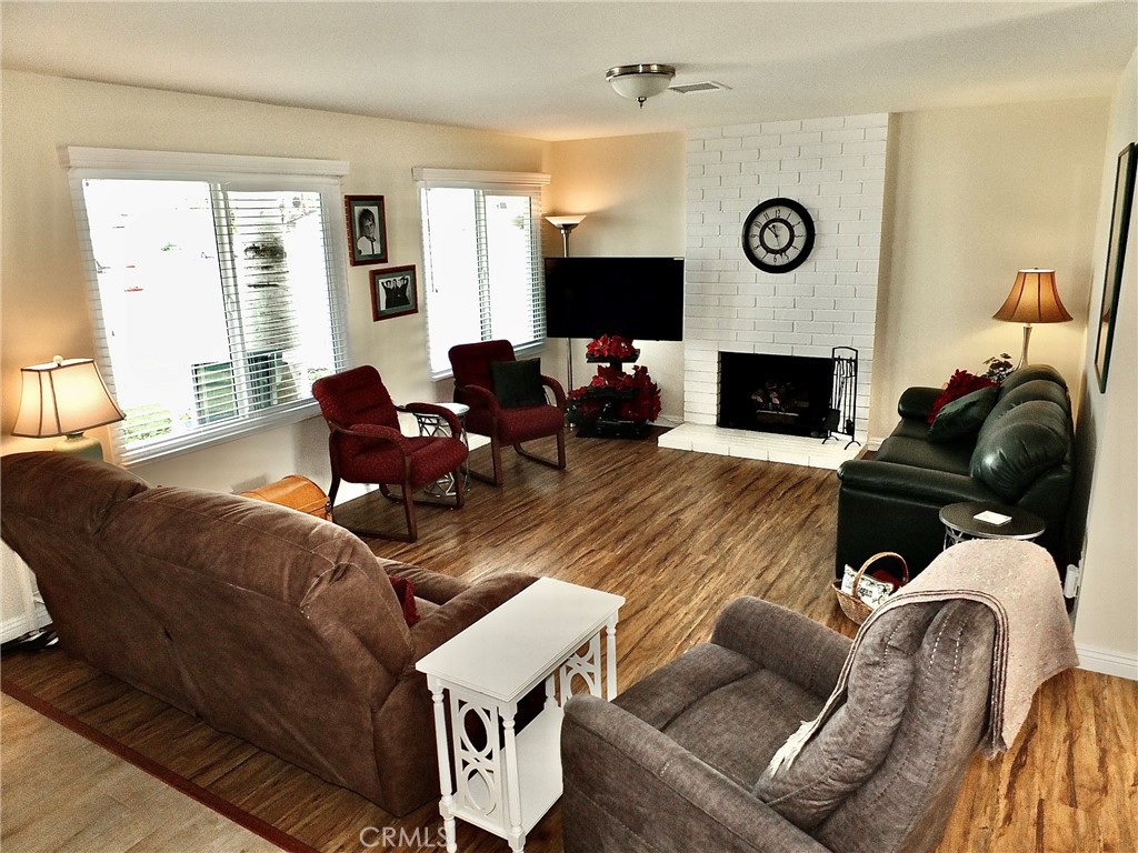 Truly charming home with beautiful garden areas filled with flowers & fruit trees (White Peach, Meyer Lemon, Granny Smith apple, Naval Orange & Clementine Tangerine). Excellent Circle View area and interior location. White front fences, new gates & block fencing in back yard. Sprinklers & automatic irrigation system, double pane windows, central A/C, gorgeous new white kitchen with Quartz countertops, SS GE appliances & pantry space. Separate laundry room with microwave, nice stacked Whirlpool “Duet” washer & dryer & extra storage area. Covered patio & cozy front porch. Wood & tile flooring throughout, 2″ blinds throughout, ample built-in shelving in garage, both baths upgraded, solid easy care hardscape & landscape. Special remote feature at living room fireplace. This home has been well cared for and everything is in wonderful “move-in” condition. This is a home that will not disappoint.