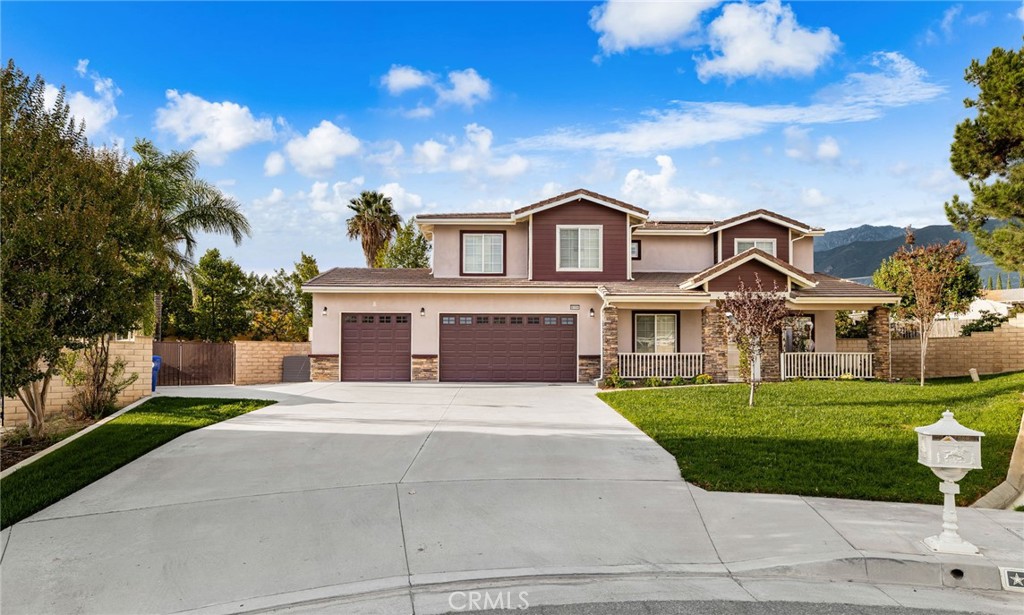 This beautiful executive home is nestled on a huge 12,097 square foot cul-de-sac lot in one of Rancho Cucamonga’s most sought after neighborhoods and as soon as you lay your eyes on it you’ll recognize the owners true “Pride-in-ownership” here are just a few of its many other outstanding features: + Its lush landscaping, complementary, paint scheme, and stacked stone portico entry with white picket fencing enhance its eye-catching curb appeal + You’ll step into a flowing 3,095 square foot open concept floor plan that is in “Move-In-Condition” with recessed lighting, a designer paint scheme, plantation shutters, and an aesthetic blend of laminate and tile flooring • The spacious living room is bathed in natural light from a multitude of windows • The family’s cook is going to truly appreciate the kitchen’s abundant cabinets, ample granite counters, large center island with built in breakfast bar, durable dual basin stainless steel sink with custom faucet, built-in stainless steel appliances, sit down breakfast area with its direct backyard access, and the convenice of the adjacent formal dining area + Since the huge family room with its cozy gas-burning fireplace flows seamlessly with the kitchen you’ll find it very easy to serve and entertain your guests simultaneously + A total of 6 bedrooms + The huge grand suite has an open sitting area, very large walk-in closet with built in organizers, plus a sumptuously appointed bathroom with huge mirrored dual sink vanity, soothing spa tub, glass enclosed shower and private commode + 3 bathrooms; 1 is located on the first level for your guests Functionally located laundry room with abundant storage, and handy vanity with sink + The energy efficient dual pane windows and gigantic solar panel array will help keep your utility bills low • Central air & heat for year-round comfort + You’re going to enjoy the huge backyard that can easily accomodate any lifestyle addition • Plenty of secure off street parking for all of your vehicles and other toys on the oversized concrete driveway and in the 3 car direct access garage • Great location close to schools, Chaffey College, grocery stores, parks, the Colonies Crossroads Mall, and the 15 & 210 freeways + Call now for all the details and I’ll gladly arrange a private tour.