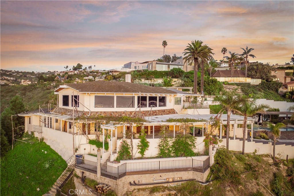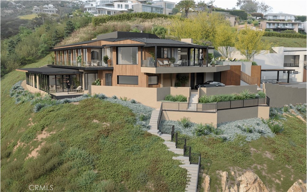 This significant development opportunity in Laguna Beach’s Temple Hills neighborhood features a down-to-the-studs remodel on a private, approximately 30,300-square-foot lot with sweeping ocean views. Located at the end of a cul-de-sac street, the offering includes DRB-approved plans by Olivos Design Studio outline an expansion of the current structure to an approximately 5,579-square-foot California Modern pool estate. Curated by Kim Duensing Projects, the vision for the breezy interiors utilizes a palette of timeless natural such as limestone, cedar, metal, and smooth stucco. The layout is thoughtfully scaled with four bedrooms (including a multipurpose office space), four and a half bathrooms, dual family rooms, and a media room. An architectural atrium-style dining room serves as the home’s focal point, capturing expansive ocean views. The exterior plan is equally comprehensive, featuring a reimagined landscape design, a new pool and spa, and generous deck spaces for quintessential outdoor living. Complete with a three-car garage and vast lot, this secluded residence is located mere minutes from Laguna’s main attractions: restaurants, world-class beaches, boutiques, and famous resorts. This project allows for the immediate realization of a high-end custom residence dream in a premier coastal location with the potential for thoughtful customization.
