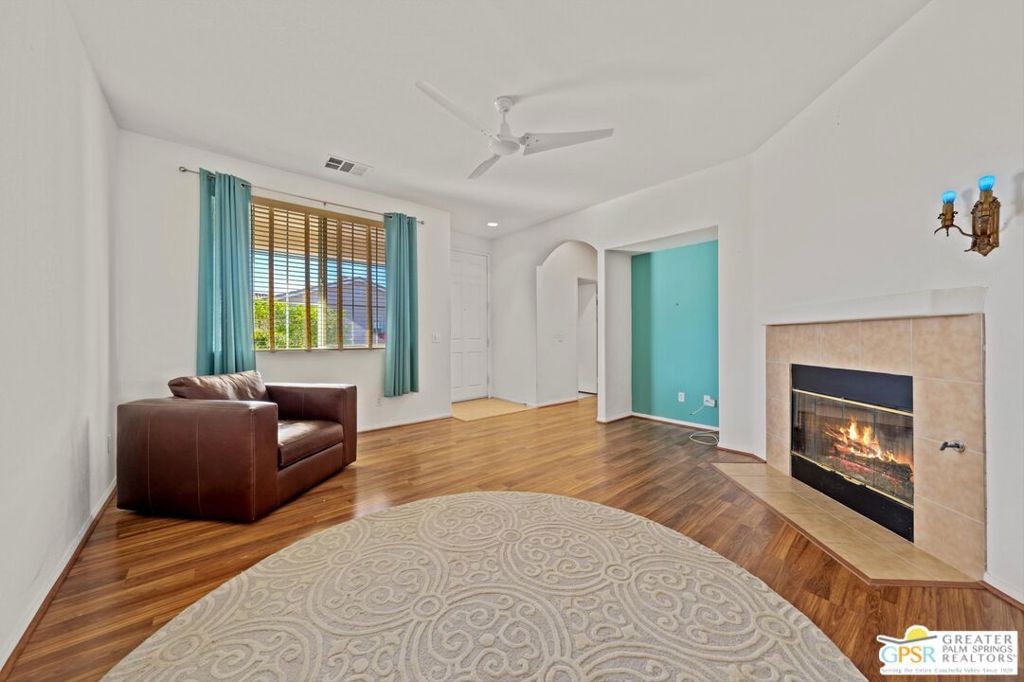This 2bed,2bath move-in rental (with PAID SOLAR – which means very very low electric bills) in gated community of Desert Willows. 55+ age restricted. All appliances included plus W/D units. Ceramic tile flooring in Kitchen and both Bathrooms. Laminate wood flooring in LR. Carpeting (brand new) in both bedrooms. Covered patio off the Kitchen/dining area—it’s great for outdoor entertaining,,even has a gas line to hook upa BBQ Grill. Fantastic mountain views. Desert (low water usage) landscaping thoughtfully done. Desert Willow has amenities of clubhouse, pool & spa, exercise room, pickleball/tennis courts. There is also a community RV storage. Home comes with a 1 car garage and parking for 2nd car on driveway, if needed. Won’t last long!!