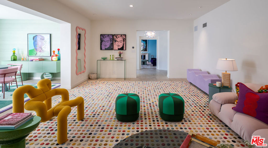 Beverly Hills Tennis Court Estate property unlike anything you’ve seen, hidden behind walls, gates & mature trees on over an acre of perfectly manicured park-like grounds in the prime foothills of Beverly Hills. Hosting a rich & elite Hollywood pedigree, up a long driveway on a knoll basking in the sun, sits this entirely reimagined home, colorfully curated by designer Angie Socas Coppel. Each room with its own joyful, lively and inspiring theme with an open floor plan with multiple spaces for entertaining. The main floor features large living spaces, a renovated chef’s kitchen with family room, staff quarters and office opening to an outdoor lounge, with Dining and Living rooms opening to the pool and grounds. The 2nd-story consists of three generous bedrooms plus a full primary suite with separate office, lounge, dual bathrooms, dual walk-in closets & French doors that open to a private terrace overlooking the stunning grounds. The sprawling grounds hold a guest house, fully equipped gym, a large pool with separate spa, sauna and a serene, private & sunken championship tennis court. The motor court has parking for up to 25 cars and the property is dialed in with a smart house system, full cameras & security complete with hotel like amenities throughout. A prime compound in one of the world’s most desirable locations.