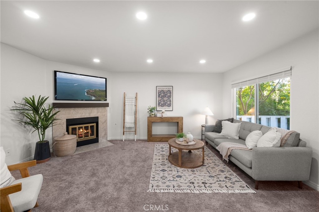Welcome to the beautiful Huntington Villas Community! This thoughtfully remodeled home is ideally positioned facing the greenbelt, offering peaceful surroundings and scenic mountain views that can be enjoyed from the recently completed concrete patio at the front entry. Inside, you’re greeted by a spacious living room featuring plush carpet, a striking marble-tiled fireplace with custom mantle, and recessed lighting that creates a warm, inviting atmosphere The upgraded kitchen is designed with both style and function in mind, featuring quartz counter tops, stainless steel appliances, a generous pantry, abundant cabinetry with lots of storage, and recessed lighting. A large stainless-steel workstation sink with integrated colander, cutting board, and drying rack is paired with brushed nickel fixtures, making meal prep and cleanup a breeze. The adjacent dining area is comfortably sized and accented by a ceiling fan and natural light. A beautifully updated half bath on the main level showcases a quartz-topped vanity, brushed nickel fixtures, tile flooring, modern lighting, a lighted mirror, and updated plumbing features. Upstairs, the spacious primary suite offers a serene retreat with recessed lighting set on a dimmer with an ensuite bathroom that has been fully reimagined with quartz countertops, double sinks, tile flooring, beveled medicine cabinets, a lighted mirror, stylish lighting, and a tub-and-shower combination enclosed with sleek glass and brushed nickel finishes. The secondary bedroom is generously sized with recessed lighting and a walk-in closet. A refreshed hall bath completes the upper level, featuring a quartz vanity, tile flooring, a lighted mirror, beveled medicine cabinet, and a step-in shower with glass enclosure. Throughout the home, recent improvements include fresh interior paint, updated doors and door jambs, dual-pane windows, coordinated flooring, window blinds, and recessed lighting, new vanities throughout, all contributing to a cohesive and modern feel. Residents of Huntington Villas enjoy access to community amenities including a sparkling pool, children’s playground, and beautifully maintained greenbelts-perfect for relaxing and outdoor enjoyment. Conveniently located near shopping, dining, schools, and freeway access—this home is perfect for buyers seeking comfort, style, and an excellent community setting.