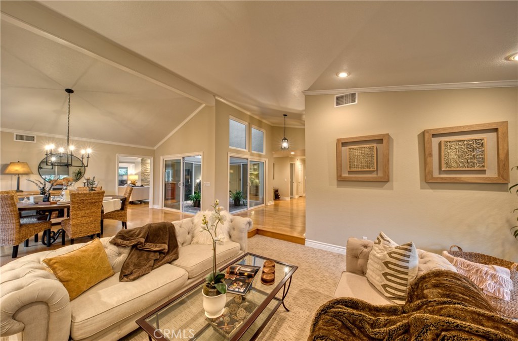 Located in the highly desirable foothills of La Verne, this meticulously maintained single-story residence offers a sophisticated blend of comfort and style. The bright and airy floorplan begins with an elegant formal living room, featuring a cozy gas fireplace and custom window seating with integrated storage, seamlessly flowing into a dining area characterized by soaring vaulted ceilings. At the heart of the home, a stunning central atrium with four walls of glass invites natural light and the tranquil sounds of a water feature indoors, creating a serene focal point for the entire property. The chef’s kitchen is a model of functionality, boasting ample cabinetry, built-in appliances, a center island with bar seating, and a dedicated breakfast nook that opens directly into an expansive great room anchored by a second gas fireplace. The primary suite serves as a private retreat, complete with its own fireplace and a spa-inspired en-suite bathroom featuring a dual-sink vanity, a walk-in closet, an oversized shower, and a separate soaking tub. Two additional well-proportioned bedrooms are complemented by a full bathroom with custom tile work and a separate powder room for guests, while a dedicated home office with built-in cabinetry provides an ideal space for remote work. Throughout the interior, gleaming hardwood floors add a touch of timeless warmth. Unique to this home is an approximately 600-square-foot enclosed patio equipped with a mini-split HVAC system, offering a versatile year-round space perfect for a game room or grand-scale entertaining.The outdoor grounds are equally impressive, featuring multiple patio areas, a built-in BBQ, and a lush grassy yard with plenty of room for a future pool. A variety of producing fruit trees, including peach, lemon, and orange enhances the private atmosphere. This exceptional property is rounded out by modern essentials and luxury conveniences, including a fully owned solar system, Tesla charger, tankless water heater, water softener, dedicated laundry room, three-car garage, a storage shed, and gated RV parking.