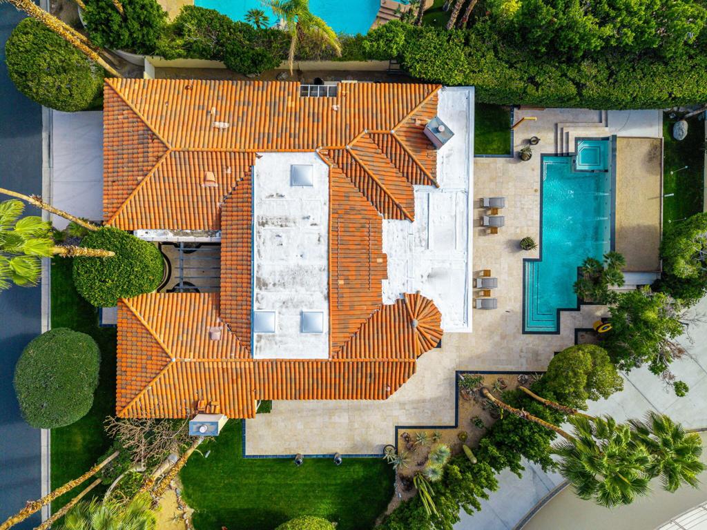 Fantastic and RARE opportunity to own one of the largest lots inside guard-gated Monterra, a high-end enclave of approx. 95 homes. This former model home for the community is sited on an extremely private, corner lot nearly 1/2 acre in size. Prime South Palm Desert real estate! The largest and most coveted floor plan in Monterra, this super spacious home is offered turn-key furnished and its layout is one of the most versatile you’ll find anywhere. A private, quiet courtyard with burbling fountain leads directly into a charming entry foyer and then into the open living space that defines Monterra living. Cozy living room with raised hearth gas fireplace and adjacent wet bar provide intimate conversation areas. All three bedrooms are well-separated and are ensuite with their own private baths. The primary bedroom is oversized with its own gas fireplace and TWO full separate bathrooms as well as TWO separate walk-in closets. There is a separate family room off the kitchen and a nearby hall half-bath. Many oversized windows and double-doors surround the house and inside several large skylights and a solar tube bring all the light in for true desert ambiance. Outside is truly magical. Sparkling pool is large and refreshing with spa, waterfalls and surrounded with square marble tile decking. Plenty of room to entertain lavishly year round under the large covered patio – even has space heaters installed above for winter nights. Explore your own entire arborium of magnificent ficus trees, olive trees, swaying palms, shrubs – and many citrus specimens: orange, lemon, meyer lemon, grapefruit, more. Relax playing a round of petanque on your own private lighted court. The side yard features an enormous marble clad pavilion, with more trees, desertscape – and more than enough room for your own private sculpture garden or putting green. A truly remarkable find! Lavishly entertain 300 people with ease in this large home and surrounding property. Large 3-car garage & zoned HVAC. Monterra is a golf-cart ride away from some of the top golfing venues in the desert and is literally adjacent to famed Ironwood CC for those who want club access without high HOAs. Just minutes to world-class dining, shopping, galleries, and services on Palm Desert’s famed El Paseo. Nearby are the McCallum Theater and College of the Desert. Walk to the Living Desert! 25 minutes to PS Int’l. Monterra’s LOW HOAs cover the guard gate and all common areas.