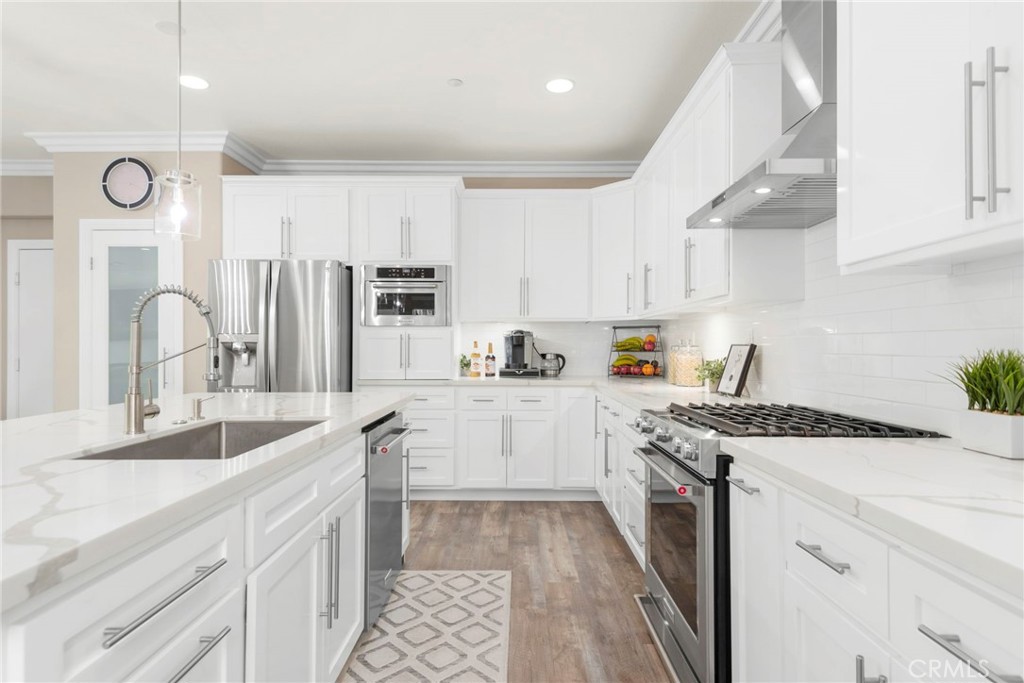 Welcome to Your Dream Condo in the Highly Sought-After Brighton at Etiwanda Community- BUILDING #3! This stunning residence boasts the second-largest floor plan in the community and showcases an open-concept layout that perfectly blends space, style, and comfort for modern living. Downstairs, you’ll find a beautifully upgraded kitchen with quartz countertops, a large island accented with pendant lighting, stainless steel appliances, a wall-mounted range hood, wine fridge, built-in microwave, an a backless gas range with oven, pantry, crown molding, central air and heating, and laminate flooring flow seamlessly into the spacious family room, complete with a cozy electric fireplace, ceiling fan, and sliding glass doors leading to a sunny tiled patio with a charming Pergola, perfect for relaxing or entertaining in style. Adjacent to the kitchen is a dedicated dining area, ideal for family meals and gatherings. The attached two-car garage with direct access features epoxy flooring and a large mirrored storage closet-ideal for storing seasonal décor and more. A convenient half-bathroom and additional storage closet complete the lower level. Upstairs, enjoy a laundry area behind elegant double frosted glass doors, with built-in cabinetry for added storage. The spacious primary suite boasts a charming chandelier, walk-in closet with built-in organizers, mirrored doors on both sides, and a chandelier. The en-suite bathroom offers a dual-sink vanity, a soaking tub, and a glass-enclosed shower with dual access (one leading to the soaking tub). Two additional bedrooms each feature ceiling fans and mirrored closet doors, offering comfort and functionality, they share a well-appointed full bathroom with double sinks, and a hallway storage closet offers even more convenience. The HOA DUES cover WATER, INSURANCE, EXTERIOR PAINT, TERMITE AND AND FRONT YARD MAINTENANCE, providing a low-maintenance lifestyle. Community amenities are plentiful, including a sparkling pool and spa, outdoor showers, BBQ and picnic areas, and playgrounds-perfect for leisure and fun.Prime location with quick access to the 15 and 210 freeways, and just minutes from Victoria Gardens Shopping Mall. This move-in-ready home perfectly blends luxury, function, and style-all within a well-maintained and desirable community. Don’t miss the opportunity to make it yours! Schedule a private tour today and experience the lifestyle you deserve!