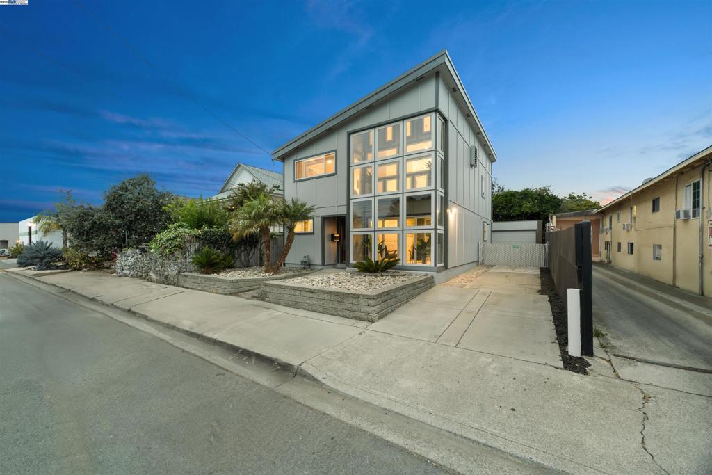 Years ahead of its time, this custom smart home was eco-friendly before green was IN! With a distinctive facade & dramatic metal skillion roof, this permitted whole home reconstruction features newer industrial decor finishes, steel I-beam & concrete slab engineering, dual zone hydronic radiant heat system & a south-facing solar atrium for passive heating. Hard-ethernet wired enabled for computerized network automation! Anchored by new LVT flooring, the main level urban/loft aesthetic is evident in an expansive kitchen with the cobalt blue cabinets & stainless steel appliances. The indoor mech room houses an eco-conscious boiler system, washer & dryer. The upper level is a 2-bed, 1-bath sanctuary perched aloft a vast open atrium. Sited on a deep lot w/generous rear setback, the freshly re-roofed oversized garage/workshop is a haven of possibilities for the car, shop, rec or small business enthusiast. Develop the property & envision live/work living or an ADU (buyer to verify). Zero pest, low maintenance grounds, walnut & avocado trees, long driveway w/plentiful off-street parking & generous side yard for a possible dog/pet run keep stress to a minimum! Central access to BART, downtown, Marina Square, freeways, airport & bridges!