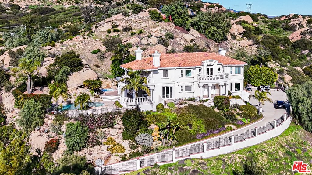 Custom Luxury Estate Carved Into the Serene Mountainside in Prime West Hills! Sitting on a Huge 1.45 Acre Lot, this private gated estate offers unlimited panoramic views from every room & features classic design elements & upgrades throughout. As you ascend up the private driveway, you are greeted by a large courtyard & grand entrance featuring dual-height ceilings, chandelier, & spiral staircase. Huge formal living area w/ freestanding dual-sided fireplace. Dining room. Family room w/ 2nd fireplace. Open concept kitchen w/ quartz countertops & adjacent dining area w/ access to backyard for al-fresco dining. Luxurious Master Bedroom Suite w/ fireplace, sitting area, private balcony, & marble-lined bathroom w/ dual vanities, jetted tub w/ view window, & standing shower. Guesthouse w/ separate entrance & private driveway, featuring 2 beds/2 baths. Resort-style backyard w/ sweeping canyon & mountain views featuring a heated rock formation pool, hot tub, waterfall, covered patio w/ outdoor dining/bar/tv area, & gazebo – perfect for entertaining! 3-car garage w/ plenty of courtyard parking. A private retreat from the city that is just minutes from the best shopping, dining, & entertainment the area has to offer. A truly unique opportunity that is not to be missed!