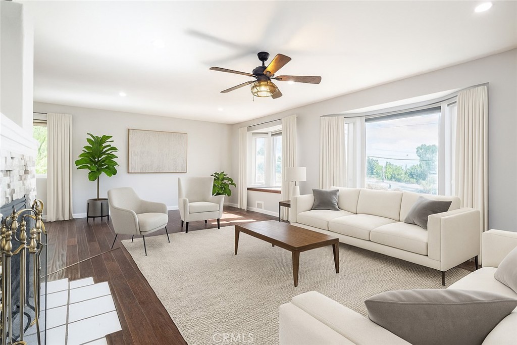 Enjoy the peacefulness and privacy of this beautifully updated 4-bedroom, 3-bath home with sweeping views of the San Fernando Valley’s city lights and surrounding mountains. Located in a quiet hillside location, this home offers comfort, charm, and plenty of space to live and entertain. Inside, the home features fresh new interior paint, an open floor plan with beamed ceilings, hardwood floors, recessed lighting, and dual-pane windows. The remodeled kitchen includes stone countertops, stainless steel appliances, a new stove top, custom cabinetry, and it comes with a refrigerator. A spacious dining area, living room with fireplace and art niche, and a first-floor bedroom with full bath all enjoy views of the backyard. An indoor laundry room with washer and dryer adds convenience. Upstairs, the primary suite features barn doors, a remodeled bath, walk-in closet, and great views. Two additional bedrooms are located on the opposite side—one with a custom overhead storage loft. There’s also a finished attic space with a mini-theater area. The long, tree-lined, stamped concrete driveway leads to a two-car garage and offers parking for several more vehicles. The large backyard is ideal for relaxing or entertaining, with new wood rail tie steps, artificial turf, space to garden, a hot tub, and a sizable storage shed that can be used as an office or workshop. A newly built deck sits at the top of the yard, offering views of the city and mountains. Additional basement storage is easily accessed from the garage. A short distance from CSUN, this Ventura County home is perfect for anyone looking to enjoy comfortable living in a peaceful, scenic neighborhood—close enough to the city, but away from the hustle and bustle. *Some pictures have been virtually staged*
