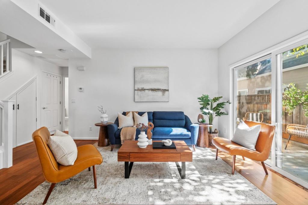 Experience the best of Mountain View living in this beautifully updated townhome that blends modern comfort, thoughtful design, and unbeatable convenience. Imagine coming home to an open, sun-filled living space where the kitchen, dining, and living areas flow together seamlessly, perfect for hosting family dinners, or relaxed evenings with friends. Step through sliding doors onto your private patio and enjoy outdoor dining year-round. Downstairs, a spacious bedroom and full bath create the ideal setup for guests, extended family. Upstairs, unwind in the expansive primary suite, complete with a private ensuite bathroom and a flexible bonus area thats perfect for a workout space, nursery, or home office. Everyday living is made easy with a one-car garage offering extra storage plus an additional assigned parking space. The community feels like a hidden gem, lined with mature trees, a recreation room for gatherings, and a friendly neighborhood vibe. Located in one of Mountain Views most desirable areas, you’ll enjoy quick access to major tech campuses, downtown dining, nearby parks, and top-rated Los Altos High School. If you’ve been searching for a move-in-ready home in Mountain View that combines comfort, style, and connection this is the one!