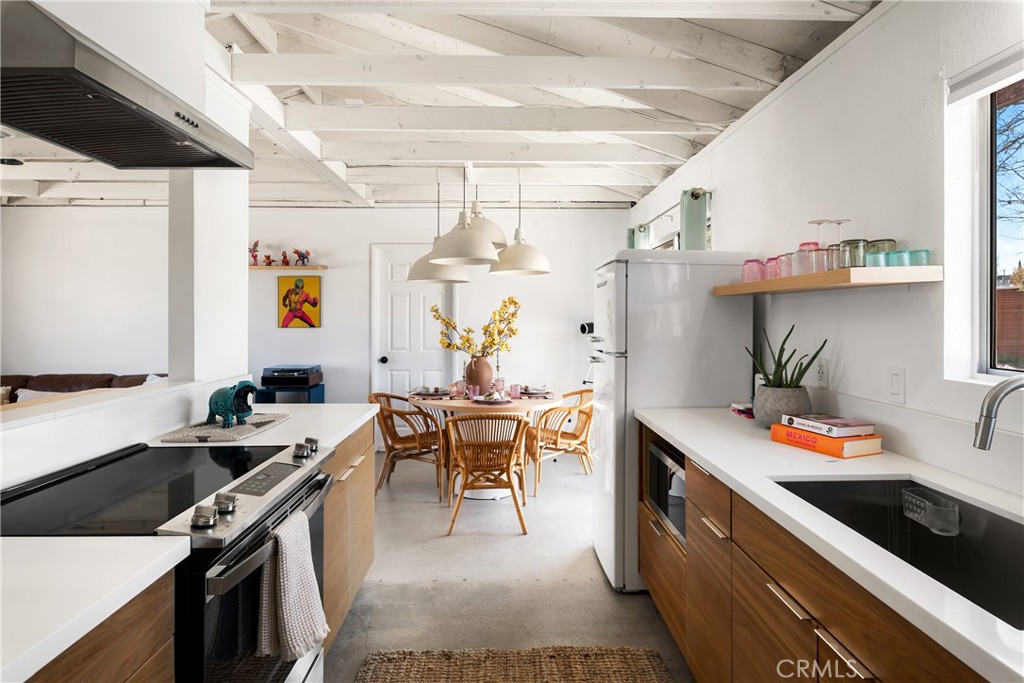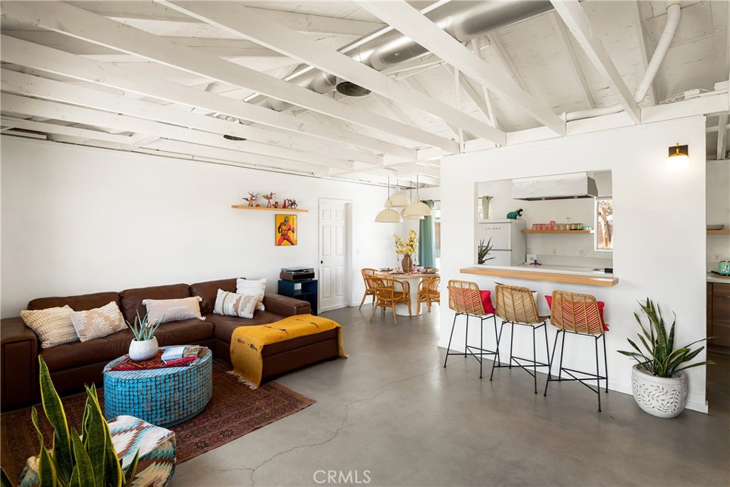 Successful short-term rental opportunity in the heart of Old Town Yucca Valley. Welcome to Casa Chica, a fully furnished 2-bedroom, 2-bathroom home offering proven short-term rental income potential and exceptional character throughout. This turnkey property is being sold fully furnished (with a few seller exclusions), making it ideal as a second home, primary residence, or investment property. Inspired by travels throughout Mexico, the home reflects a modern Mexico City vibe with vibrant colors and design elements that celebrate Mexican culture, heritage, and craftsmanship while maintaining a warm, inviting desert aesthetic. Interior features include polished concrete floors throughout and beautifully remodeled bathrooms. The thoughtful layout provides comfortable bedrooms and functional living spaces designed for both everyday living and guest enjoyment. The fully fenced backyard offers privacy and mountain views in every direction. In addition to the large spa, the outdoor space includes concrete seating and entertaining areas, perfect for gathering and enjoying the desert lifestyle under the stars. The property is connected to city water, natural gas, and public sewer, a valuable convenience in the High Desert. A large attached garage provides additional storage, parking, or potential flex space. Located in Old Town Yucca Valley, just minutes from local shops, dining, and a short drive to Joshua Tree National Park. A rare opportunity to own a character-filled, income-producing desert retreat with versatility and charm.