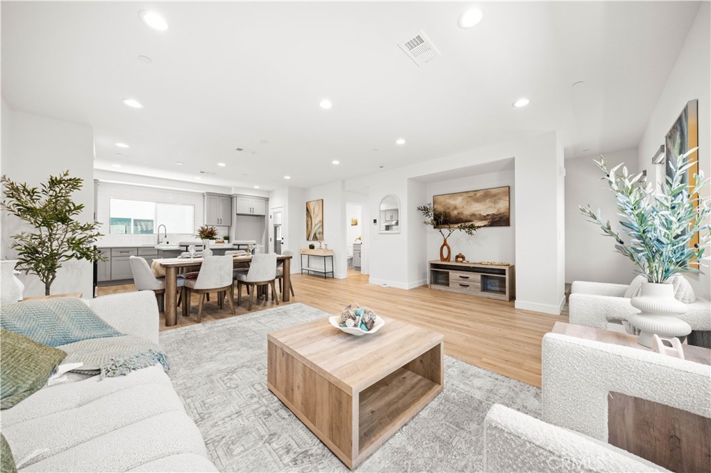 Welcome to this beautifully crafted 3-bedroom, 2.5-bathroom townhome, featuring 1,586 sq ft of modern comfort and style. Featuring high-end builder upgrades throughout, this home boasts waterproof, scratch-resistant, and fire-resistant wood flooring that combines durability with elegance. The open-concept layout is filled with natural light, creating an inviting space perfect for everyday living and entertaining. The chef’s kitchen stands out with sleek soft-close drawers and contemporary finishes that make meal prep effortless. Spacious bedrooms provide plenty of room to relax, including a large primary suite with a private bath for added privacy and convenience. Energy-efficient double-pane Milgard windows help keep your home quiet and comfortable, while solar panels reduce your energy costs and support a sustainable lifestyle. Additional features include an attached garage, in-unit laundry, and ample storage to meet your everyday needs. Nestled in the sought-after community of The Nines @ Ninth Street, this home offers low-maintenance living and quick access to shopping, dining, and major commuter routes—just 1 minute to I-5 and 5 minutes to CA-91. This unit is a perfect fit for new families, young couples, and anyone seeking a fresh, modern home with all the right upgrades!