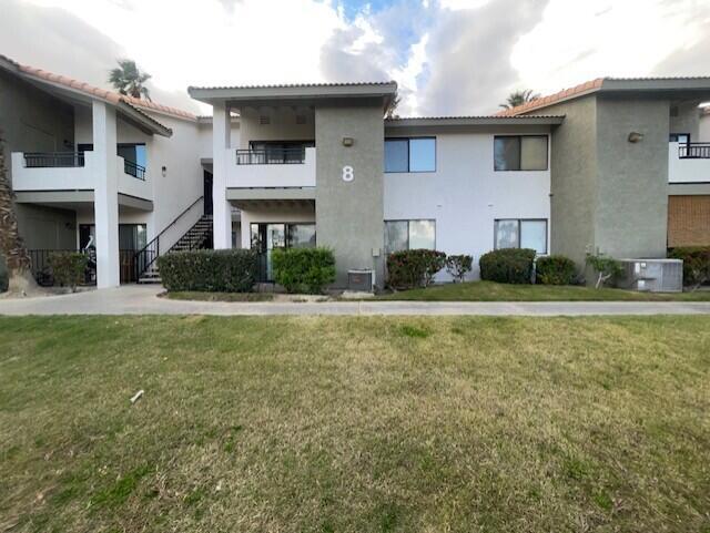 Location, Location, location. Directly across from the pool/spa… Close to schools, shopping and 10-E/W. Nice 1 bedroom condo with granite counter tops in kitchen, nice cabinetry. Carpet in bedroom and tile in rest of condo. Washer/dryer located in storage closed off of patio that has bbq/storage box. 2 parking spaces 1 covered/1 uncovered. Backs up to Adams street. Great condo, can use as a rental longterm.