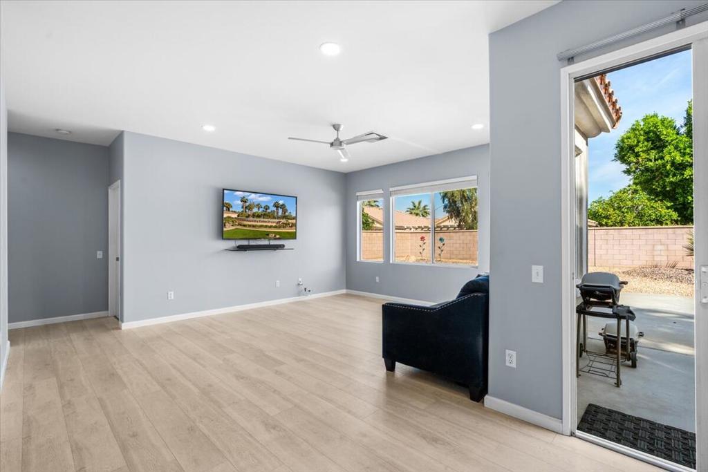 Welcome to 78970 Nectarine in Sun City Palm Desert, the popular Maui model–one of the community’s most efficient and easy-to-maintain floor plans. Offering 2 bedrooms, 2 bathrooms, and 1,010 sq. ft., this home is perfect for those who value effortless upkeep without sacrificing comfort or style. Situated on one of the larger privacy lots, (6970 sq. ft.) this property offers a rare combination of space and seclusion, while still providing a blank slate ready for your personal vision. A brand-new roof (2024) adds peace of mind, and recent modern updates elevate the interior. The kitchen has been completely remodeled with quartz countertops, a custom tile backsplash, stainless steel appliances, and a breakfast bar/workspace ideal for casual dining or morning coffee. Engineered wood flooring flows throughout, complemented by new window blinds for a fresh, clean look. Extensively remodeled bathrooms featuring updated modern cabinetry, countertops fixtures and finishes. The primary suite includes a walk-in closet and dual vanities in the en-suite bath. Additional features include washer and dryer in the garage and two 50-amp outlets for EV charging. Living in Sun City Palm Desert means enjoying resort-style amenities with an affordable HOA–multiple clubhouses, pools, fitness centers, golf, social clubs, dining, and activities for every interest. Conveniently located near the I-10 freeway and Acrisure Arena, this home offers easy access to everything the desert has to offer. Low maintenance. Modern updates. Privacy. Lifestyle. This is desert living made simple.
